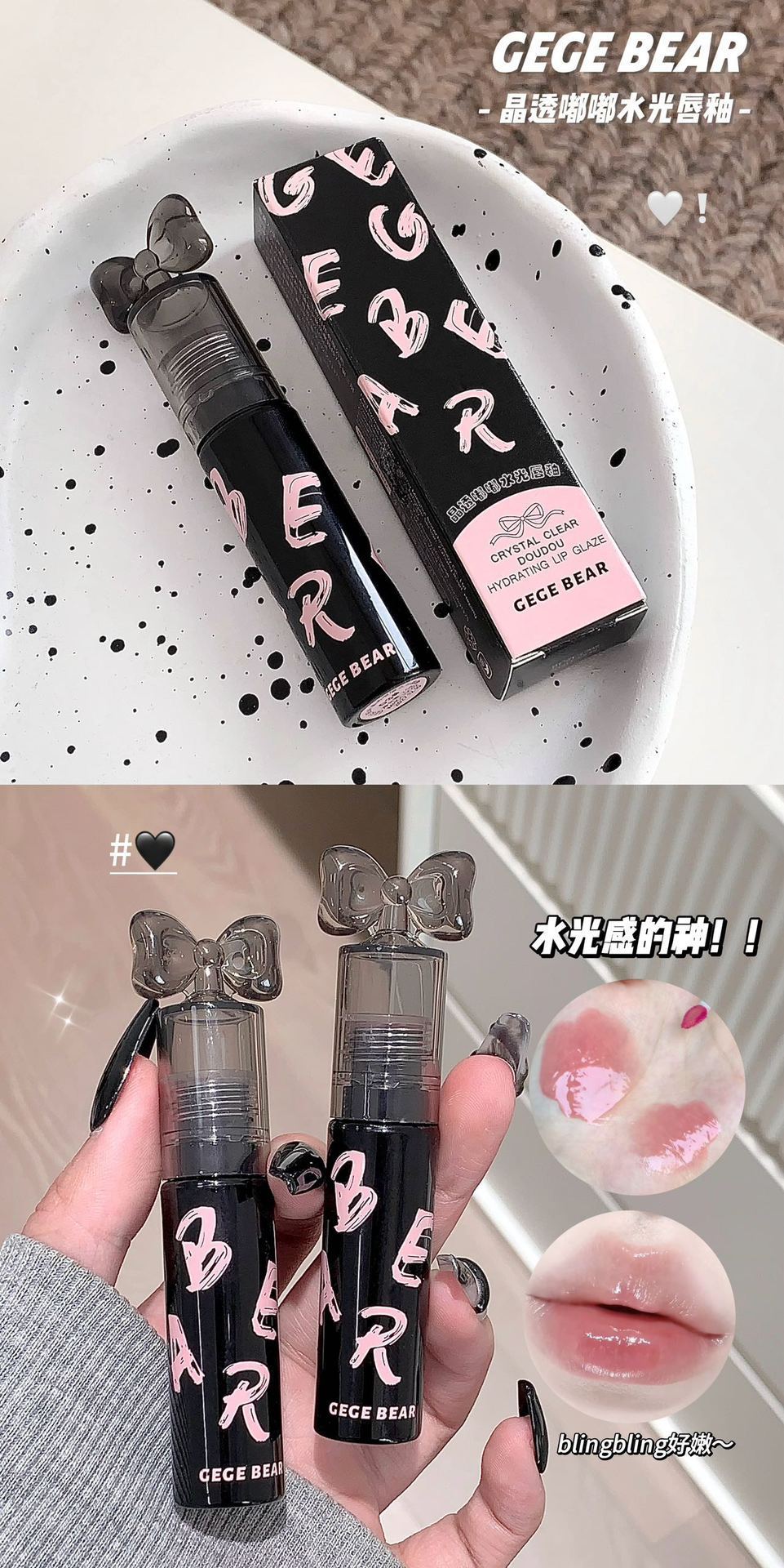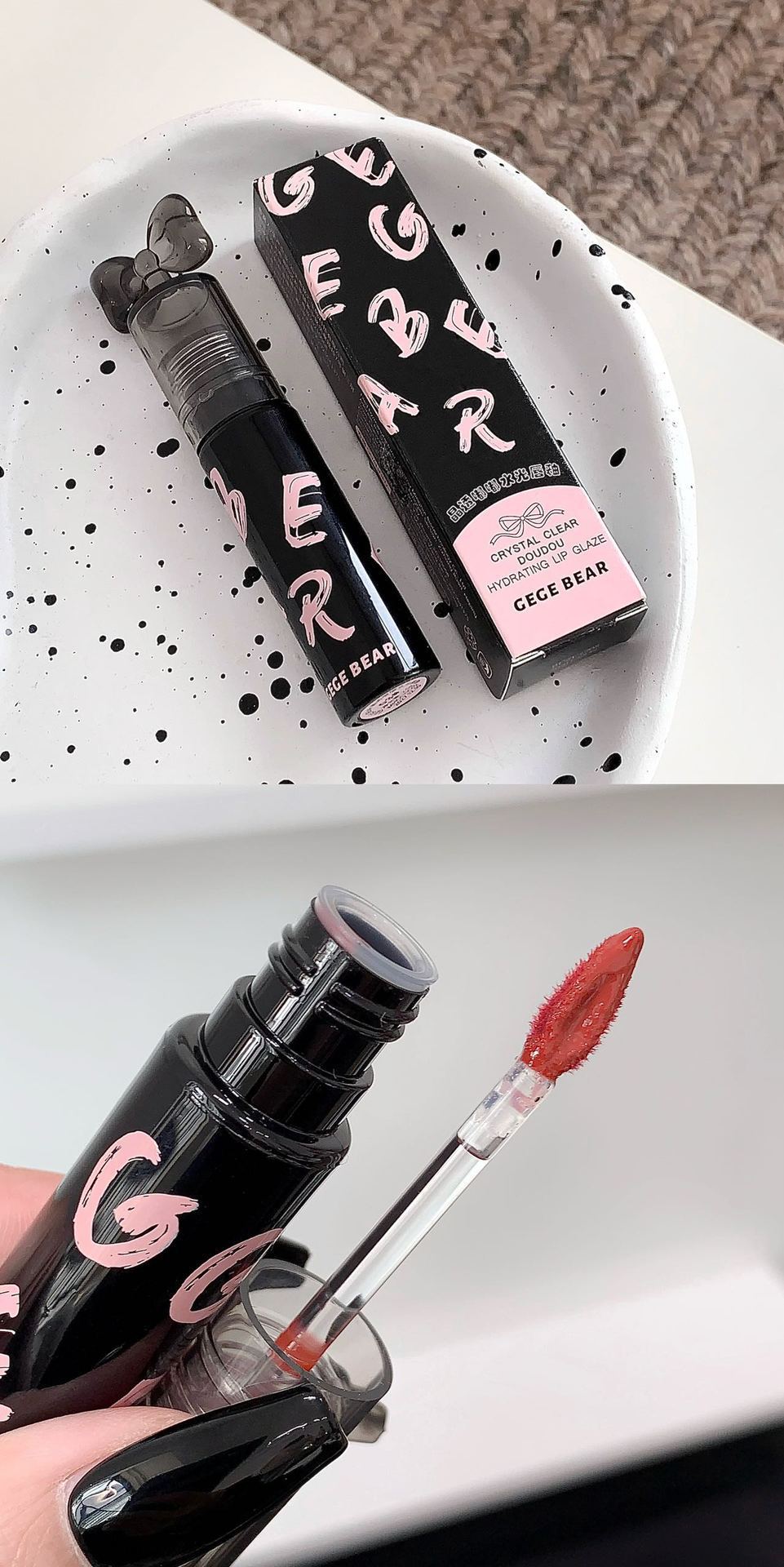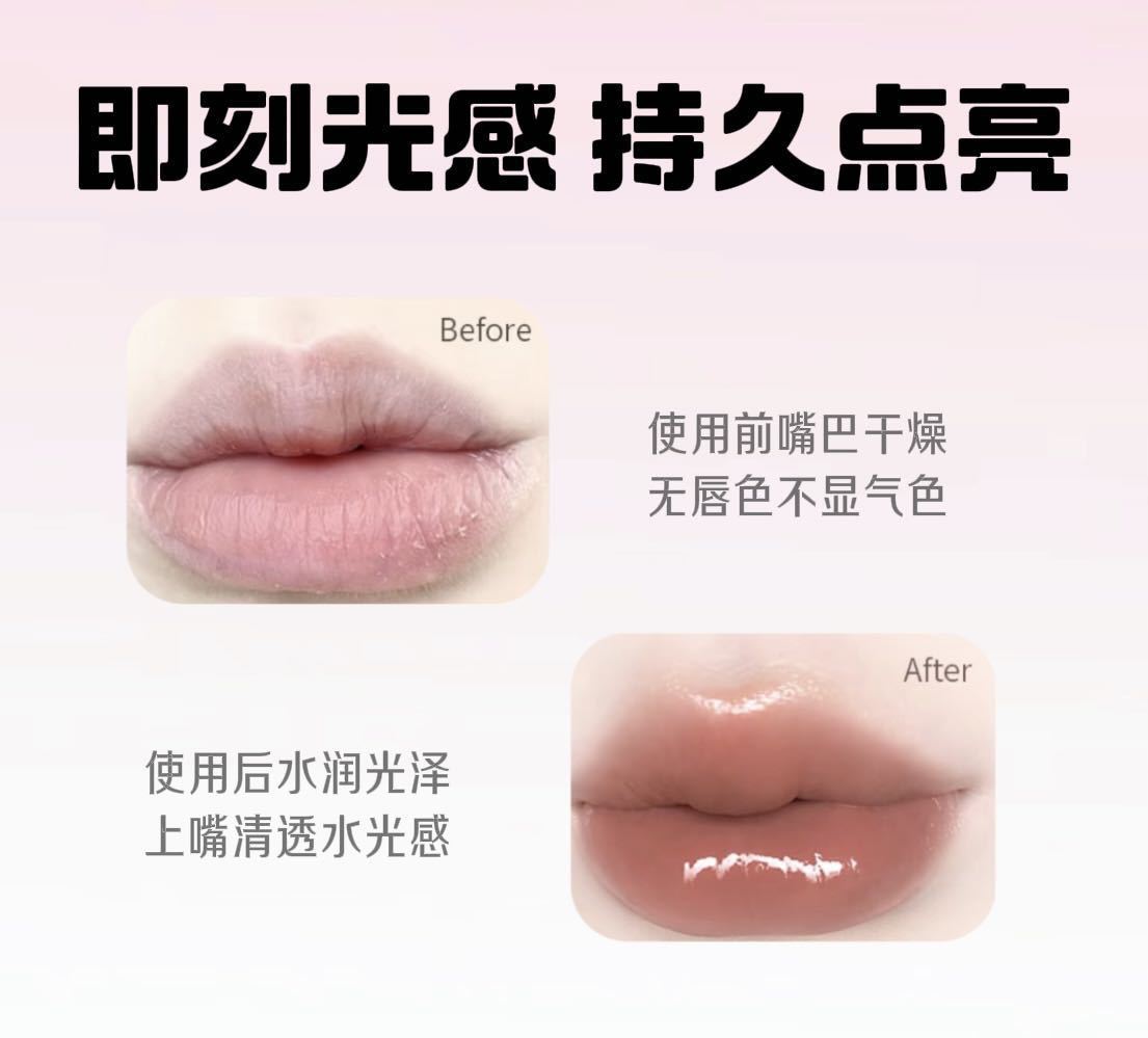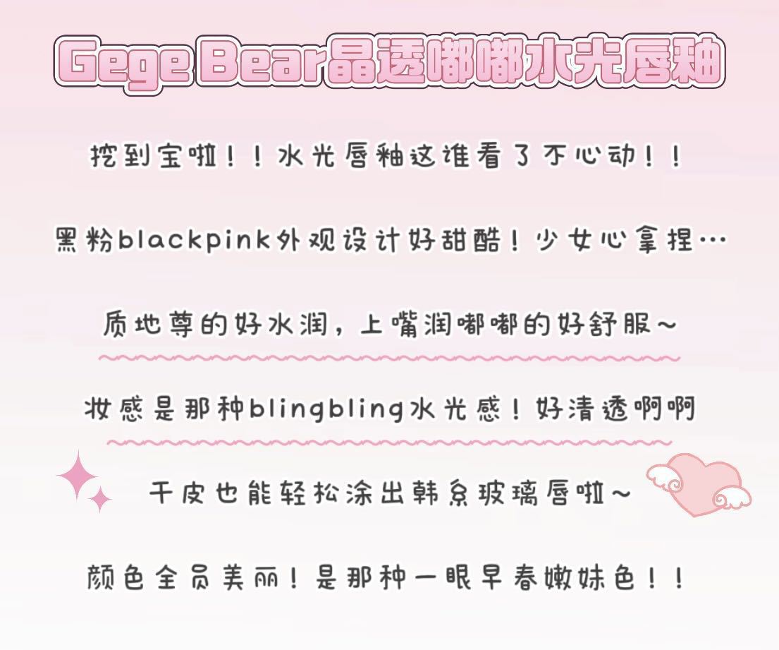 Gege Bear クリスタルクリアウォーターライトリップグレーズミラー保湿ノンスティックカップ無地女子学生パーティー美白口紅