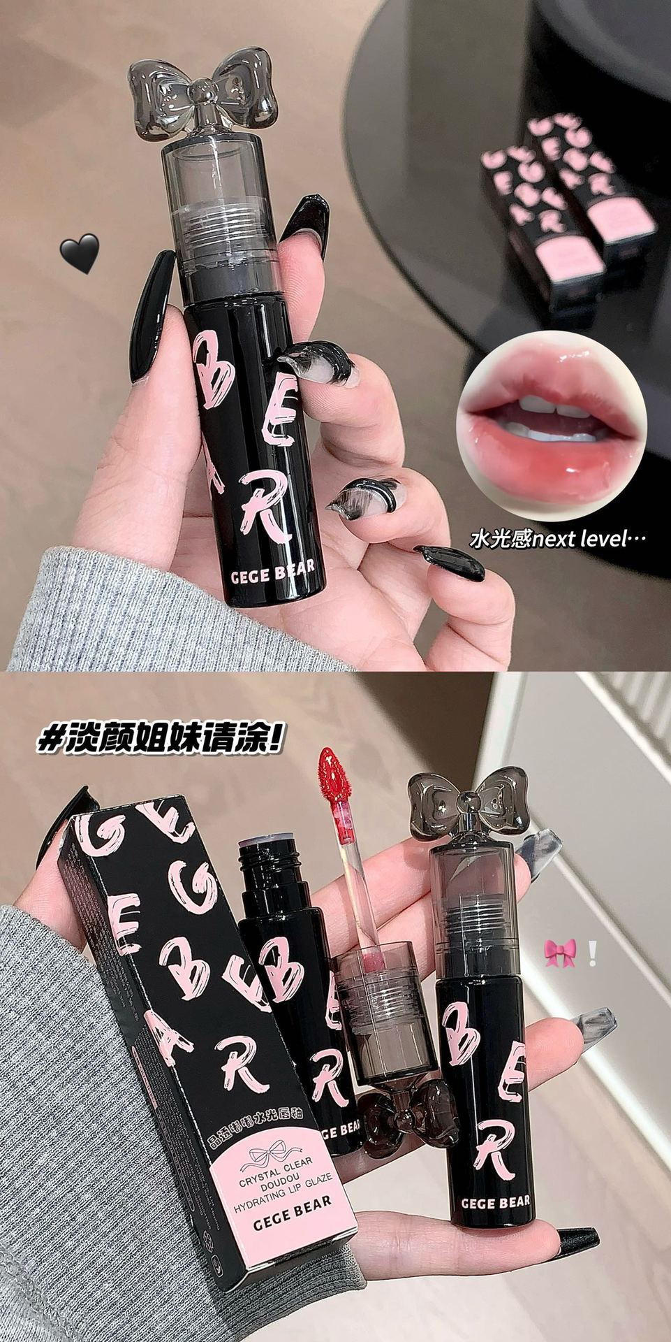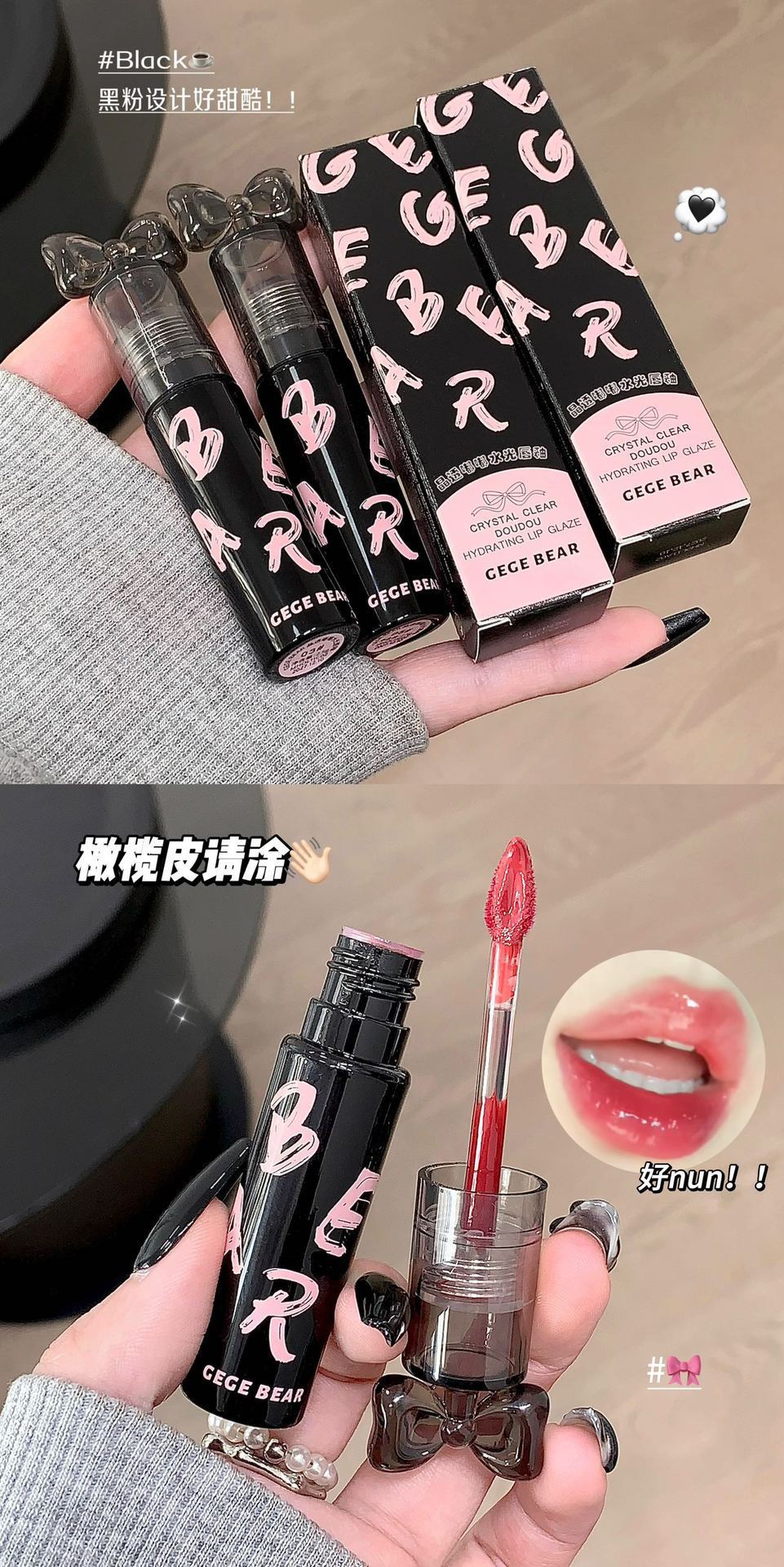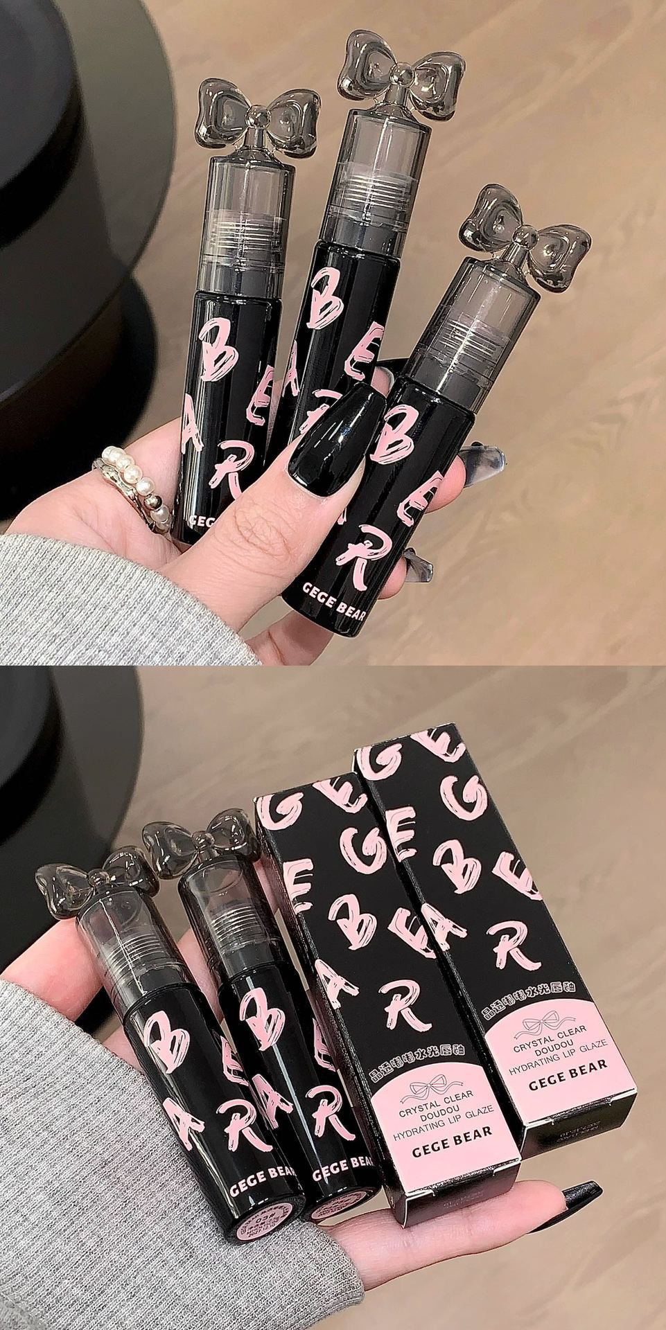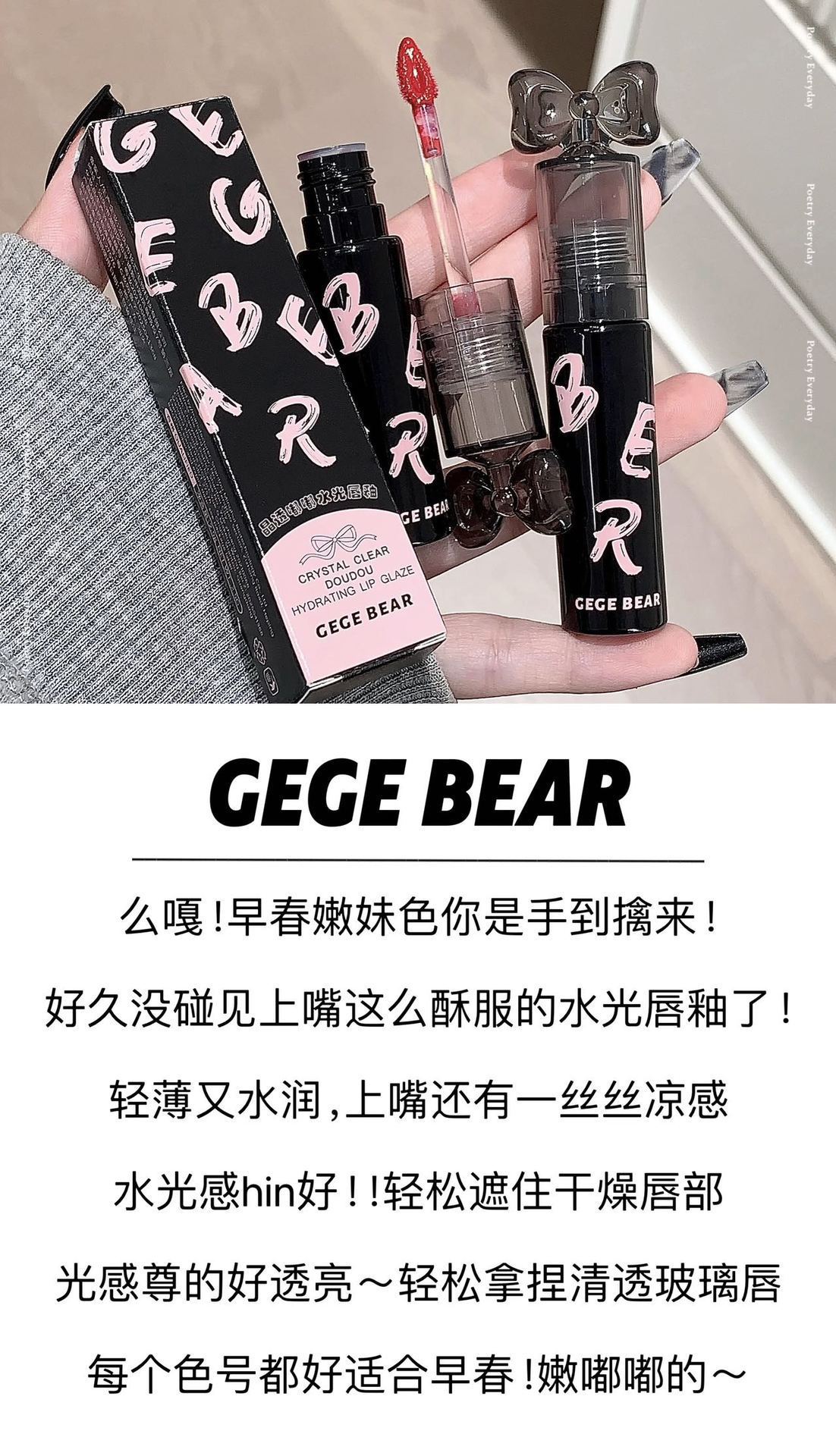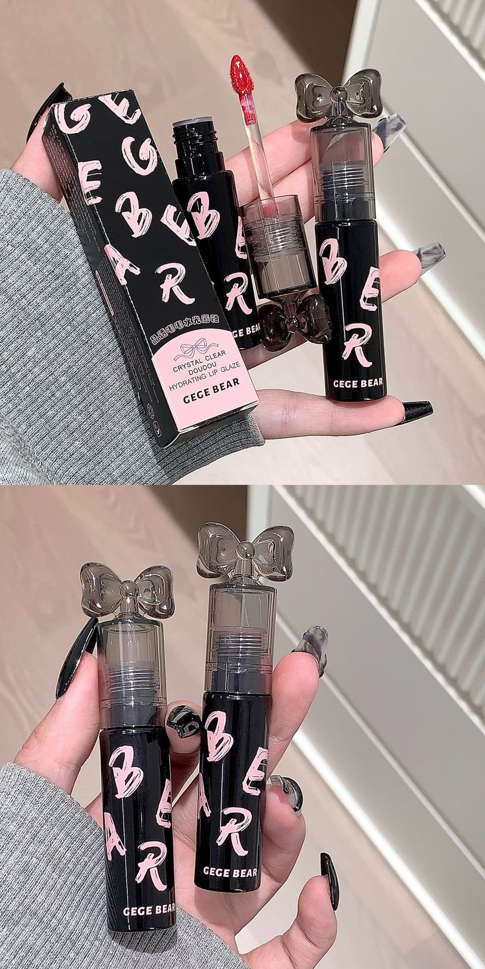 Gege Bear クリスタルクリアウォーターライトリップグレーズミラー保湿ノンスティックカップ無地女子学生パーティー美白口紅