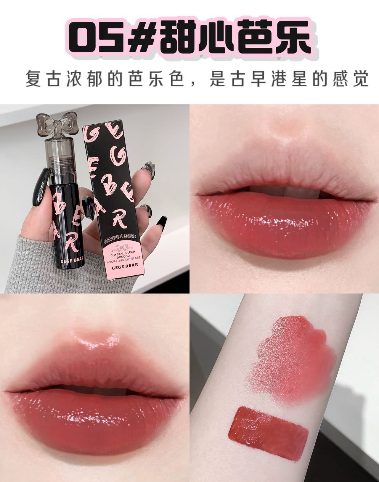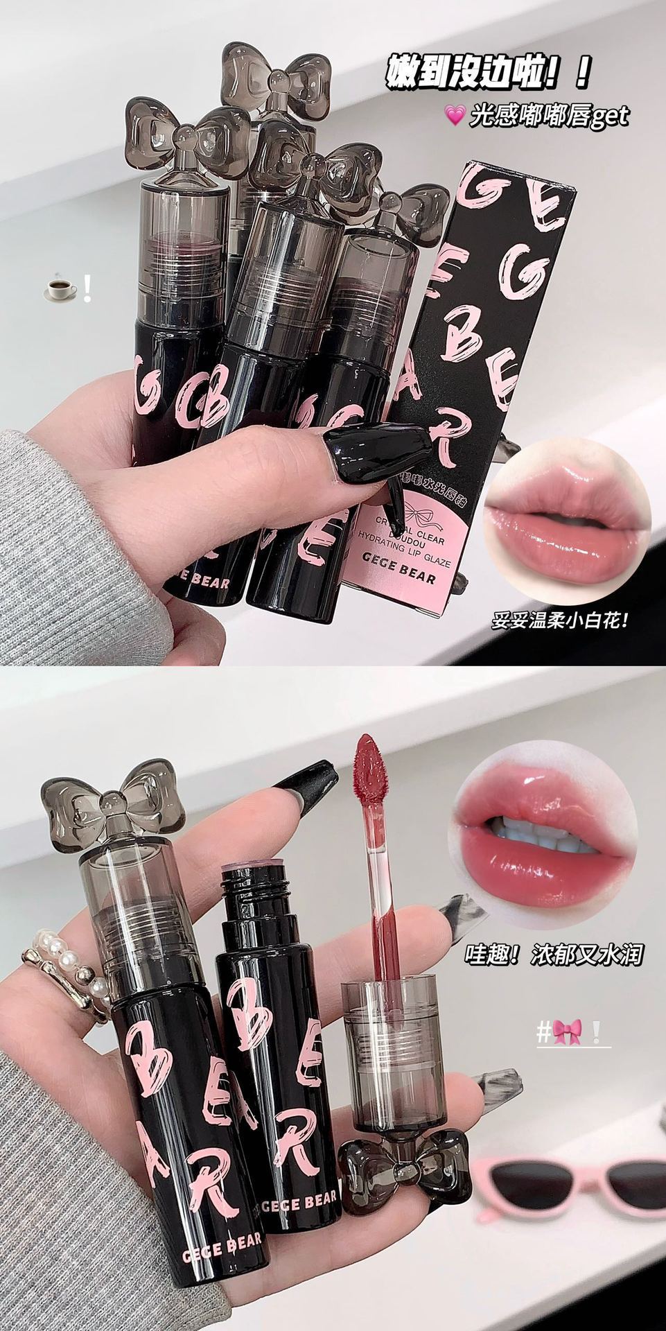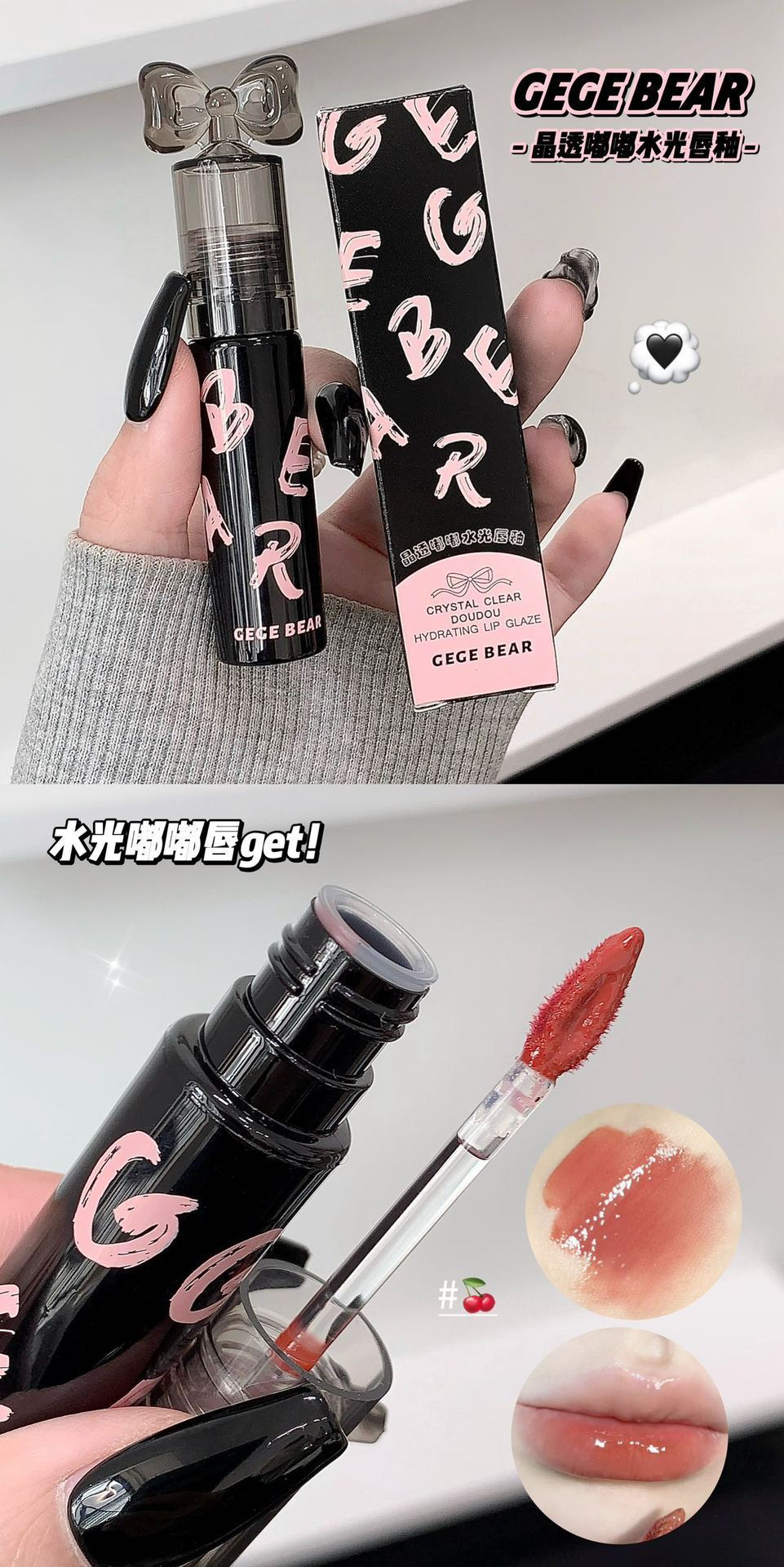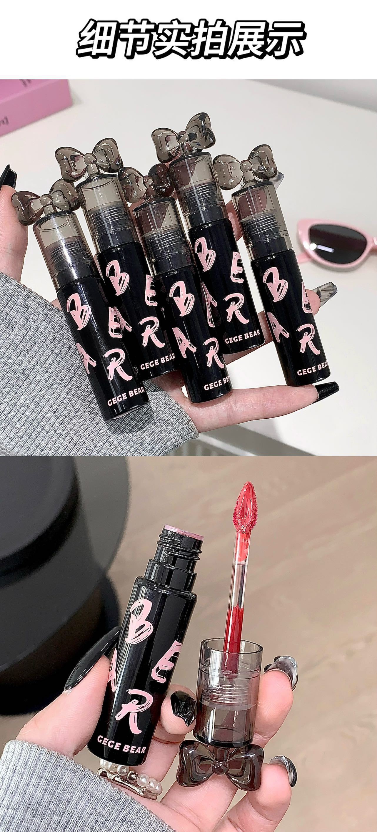 Gege Bear クリスタルクリアウォーターライトリップグレーズミラー保湿ノンスティックカップ無地女子学生パーティー美白口紅