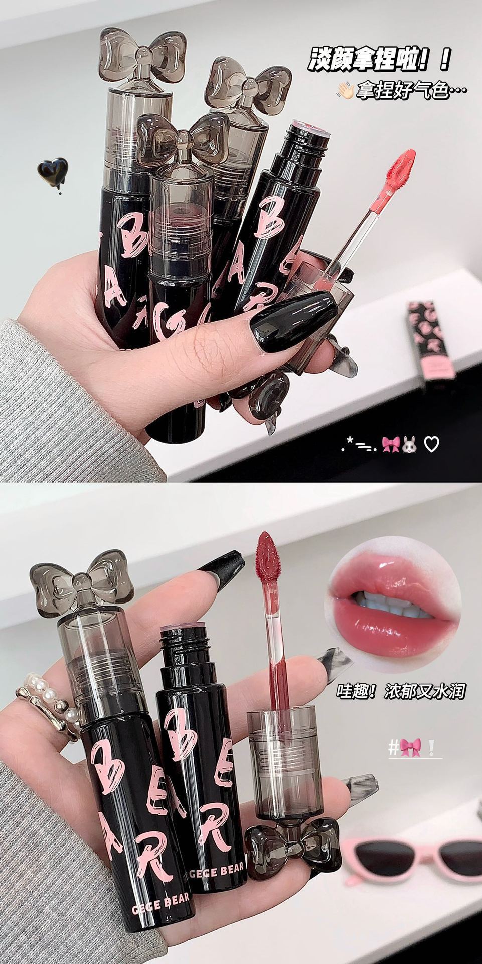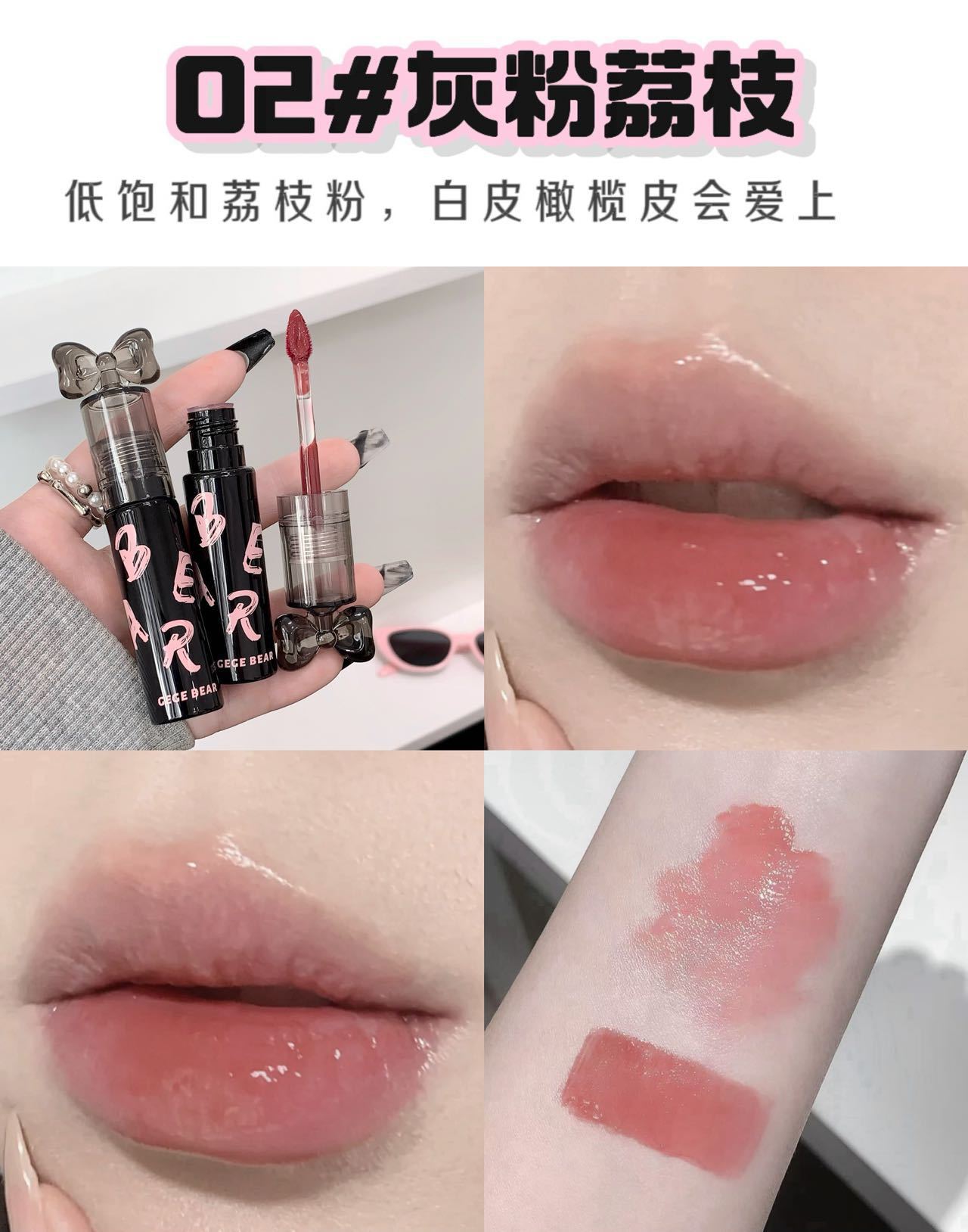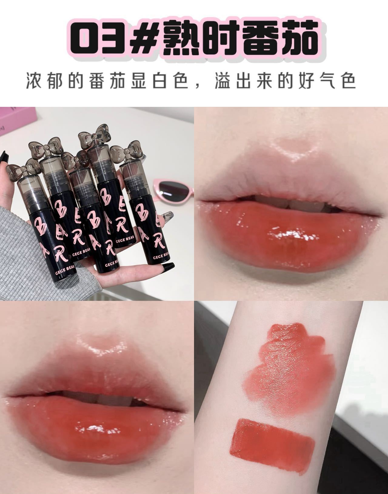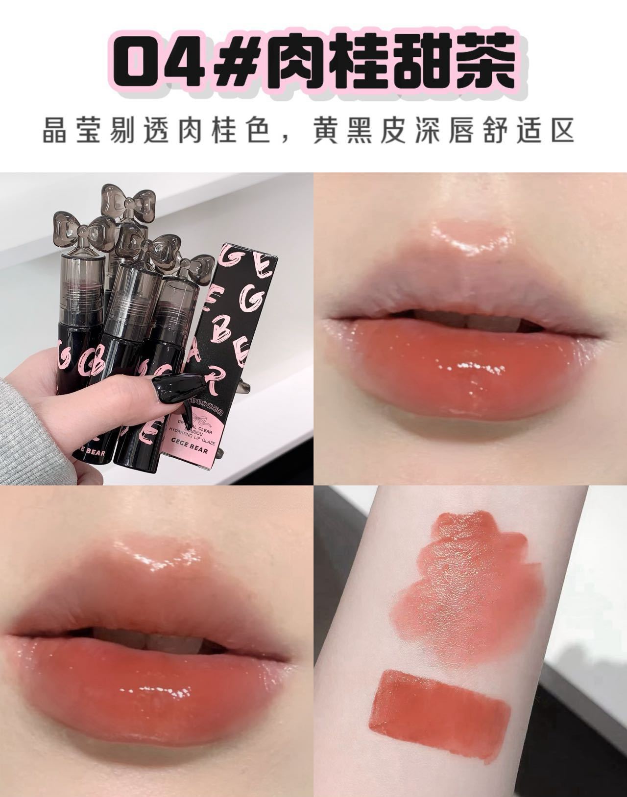 Gege Bear クリスタルクリアウォーターライトリップグレーズミラー保湿ノンスティックカップ無地女子学生パーティー美白口紅