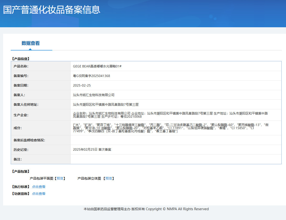 非特殊化粧品登録証番号 広東Gメイクアップネットワーク準備番号 2025041368