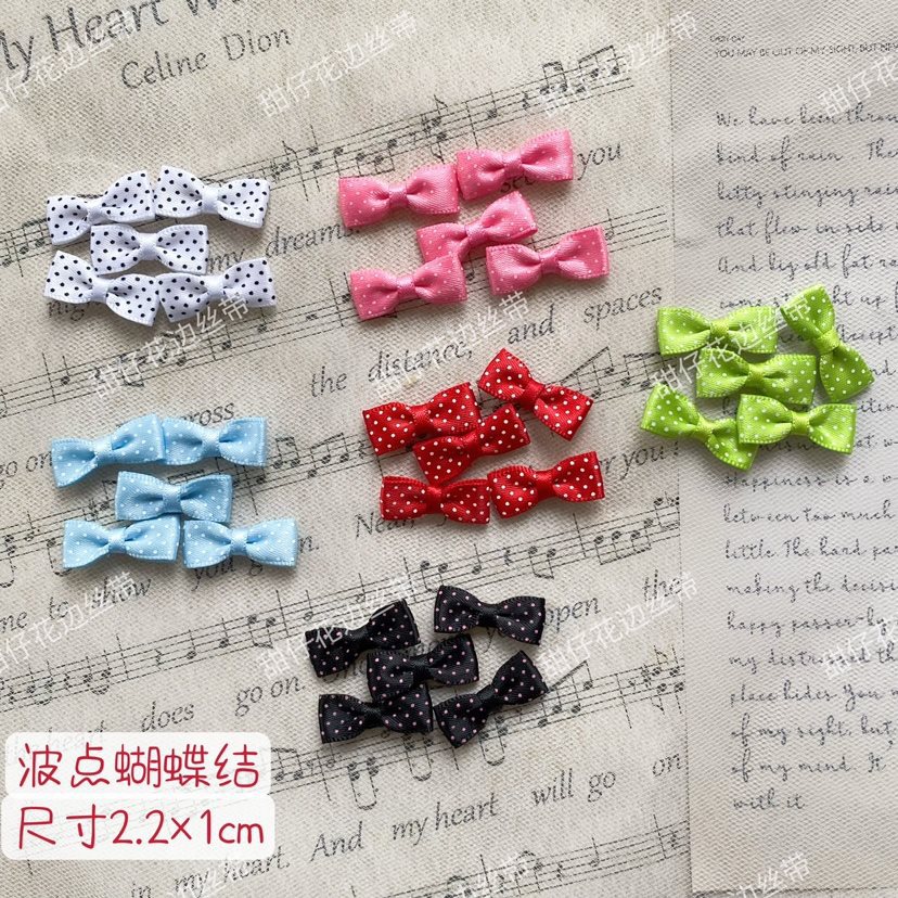 水玉模様の小さなリボン 2.2 センチメートル × 1 センチメートル小さな布人形の頭飾り綿人形ヘアアクセサリー手作り diy アクセサリー