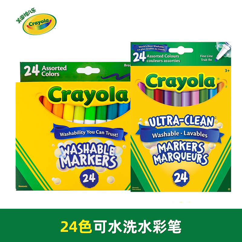 Crayola絵画児童楽24色水洗い可能な太い棒水彩ペン児童幼稚園絵画落書きカラーペン
