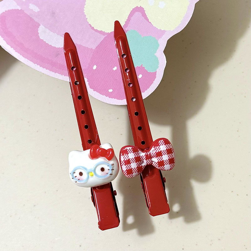 可爱红色长条发夹眼镜猫咪少女化妆碎发鸭嘴一字发卡侧边发饰刘海
