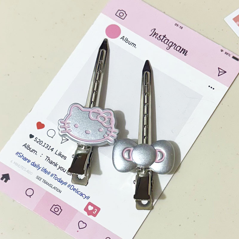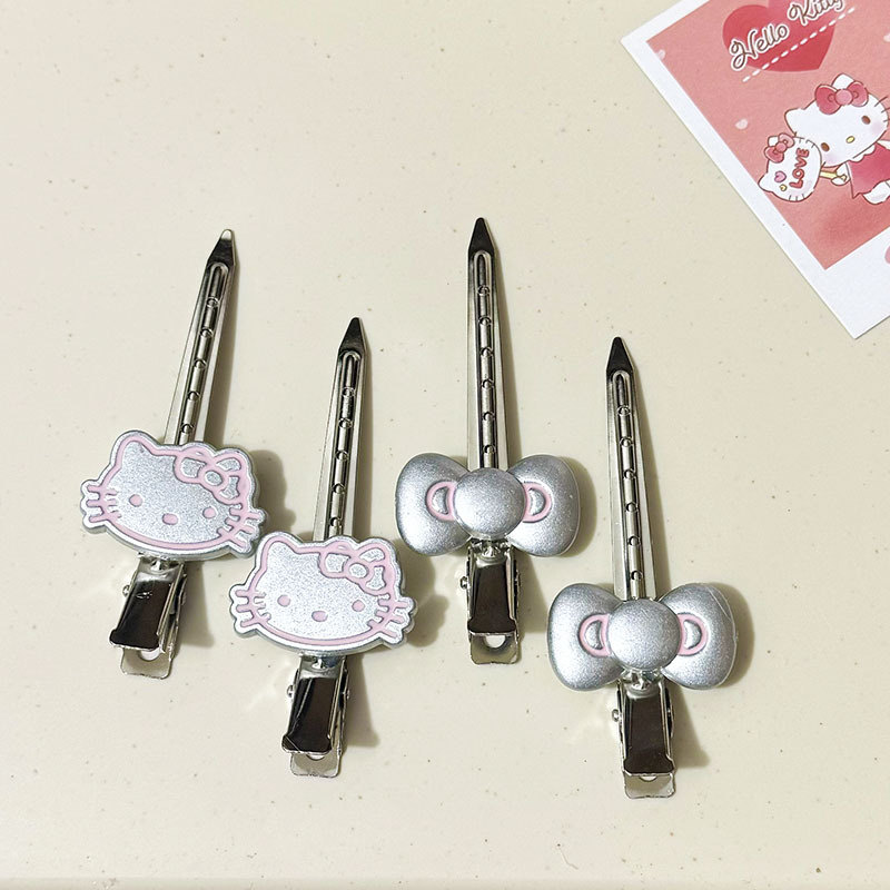 甘くてクールなスタイルの明るいシルバーの細かいキラキラ KT 猫ヘアピンインワンラインクリップ細い髪前髪クリップサイドクリップ女の子のヘアピンヘアアクセサリー