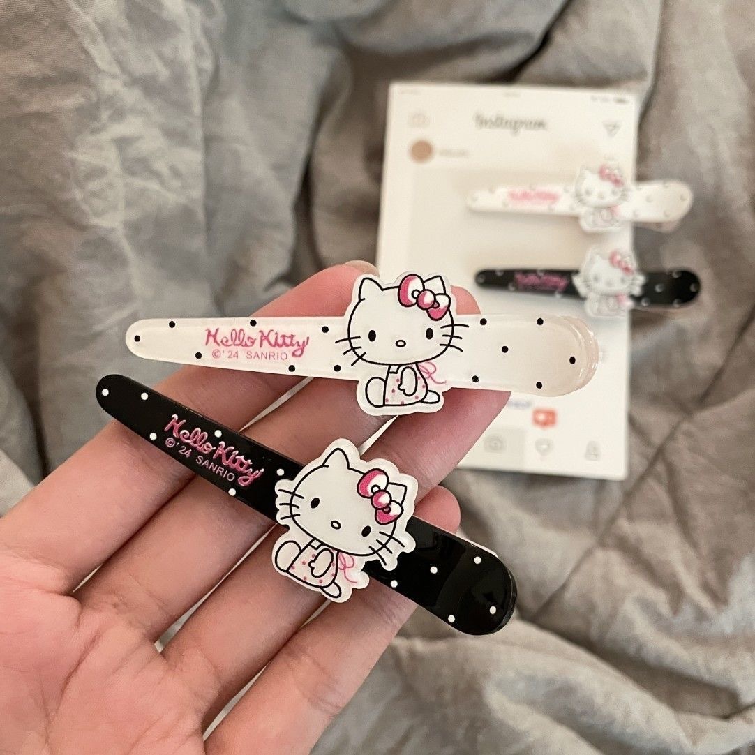 猫の水玉模様のサイドクリップ、カモノハシクリップ、楽しいヘアアクセサリーのペア、ヘアピン、日本の漫画の頭飾り、シームレス