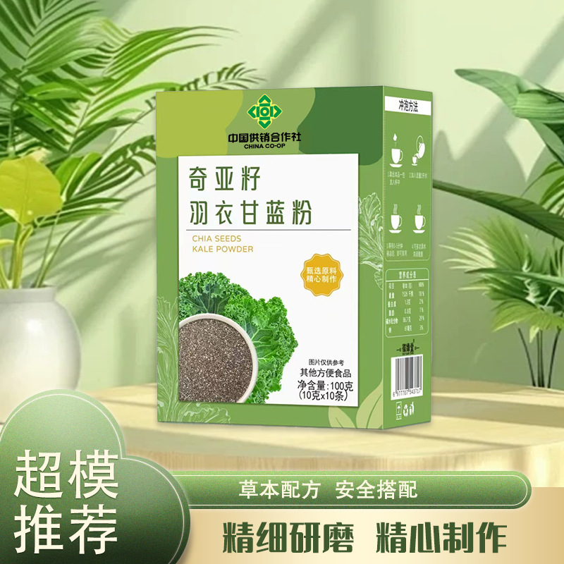 チアシードとケールの粉末、インスタントドリンク、冷温両用、食物繊維豊富、便利な食品、即納