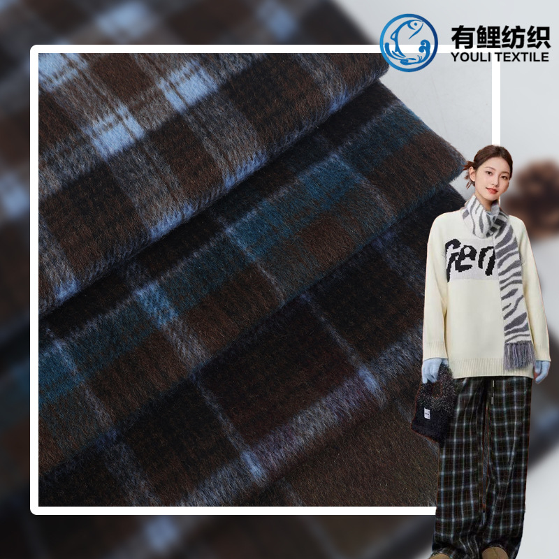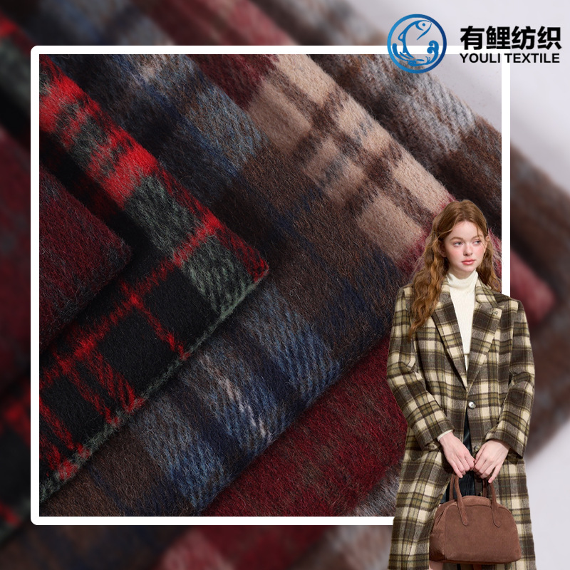 格子粗紡織秋冬生地ファッションコート女装コート女装ズボンバッグスカートなどの生地