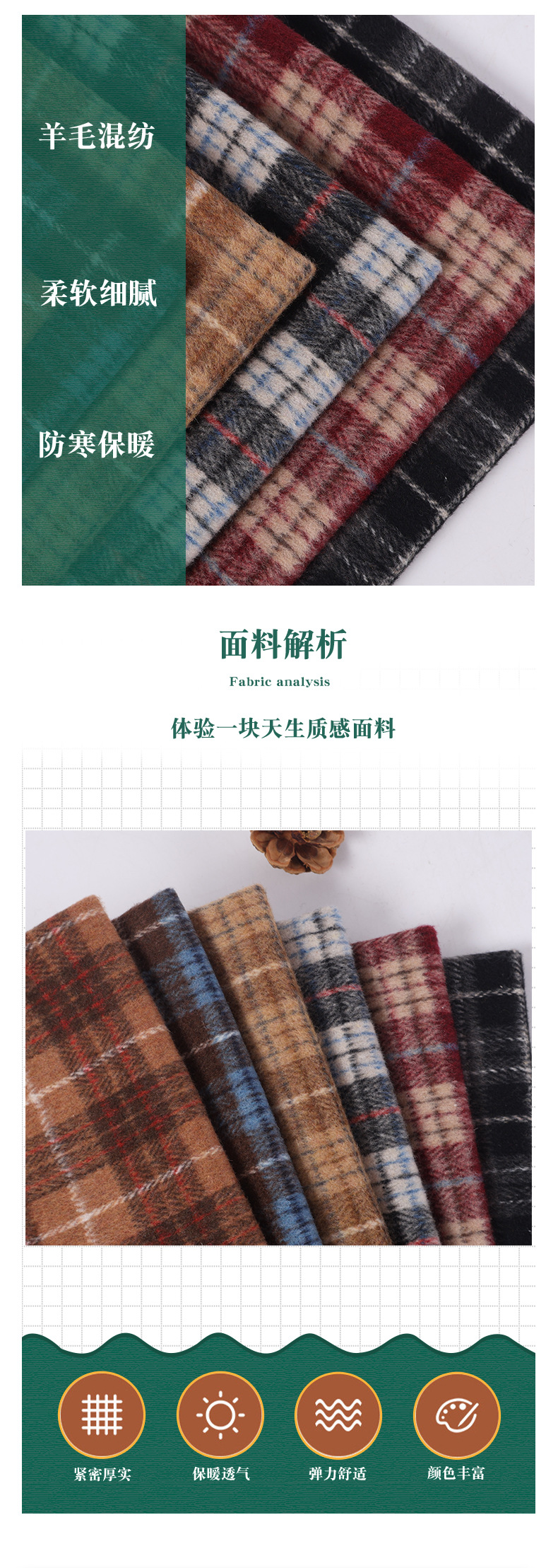 现货新款秋冬粗纺大衣呢毛呢格子呢面料时尚外套围巾风衣毛纺布料