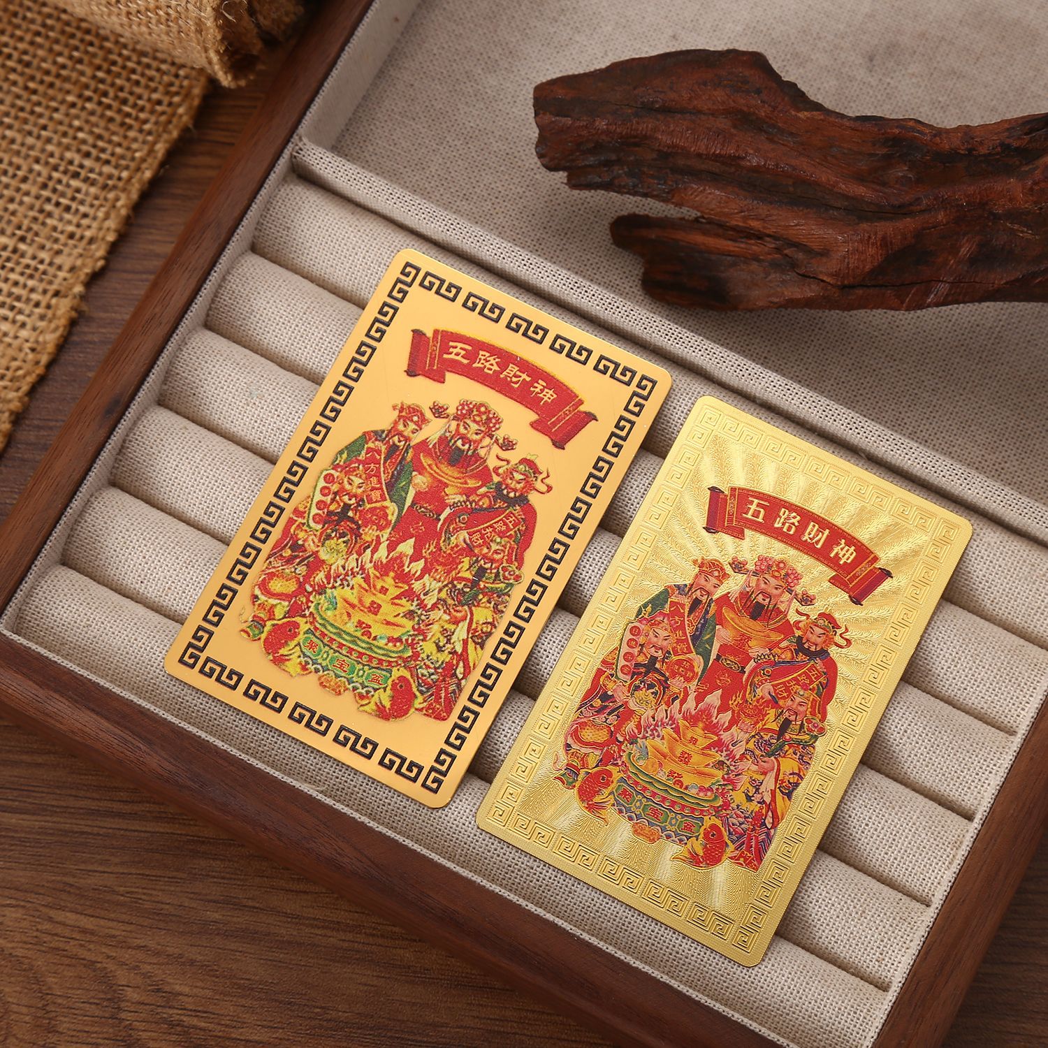 富の五方の神様、金カード、携帯電話、金箔、金属シート、趙公明の富と宝の招き、平和と幸運のマスコット