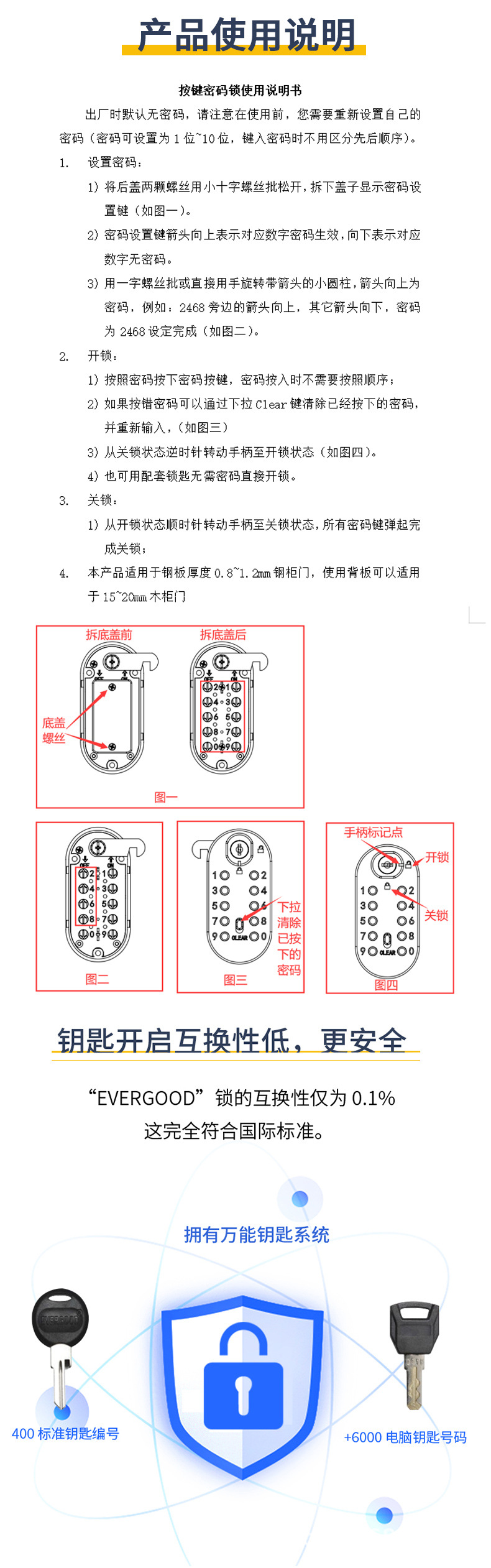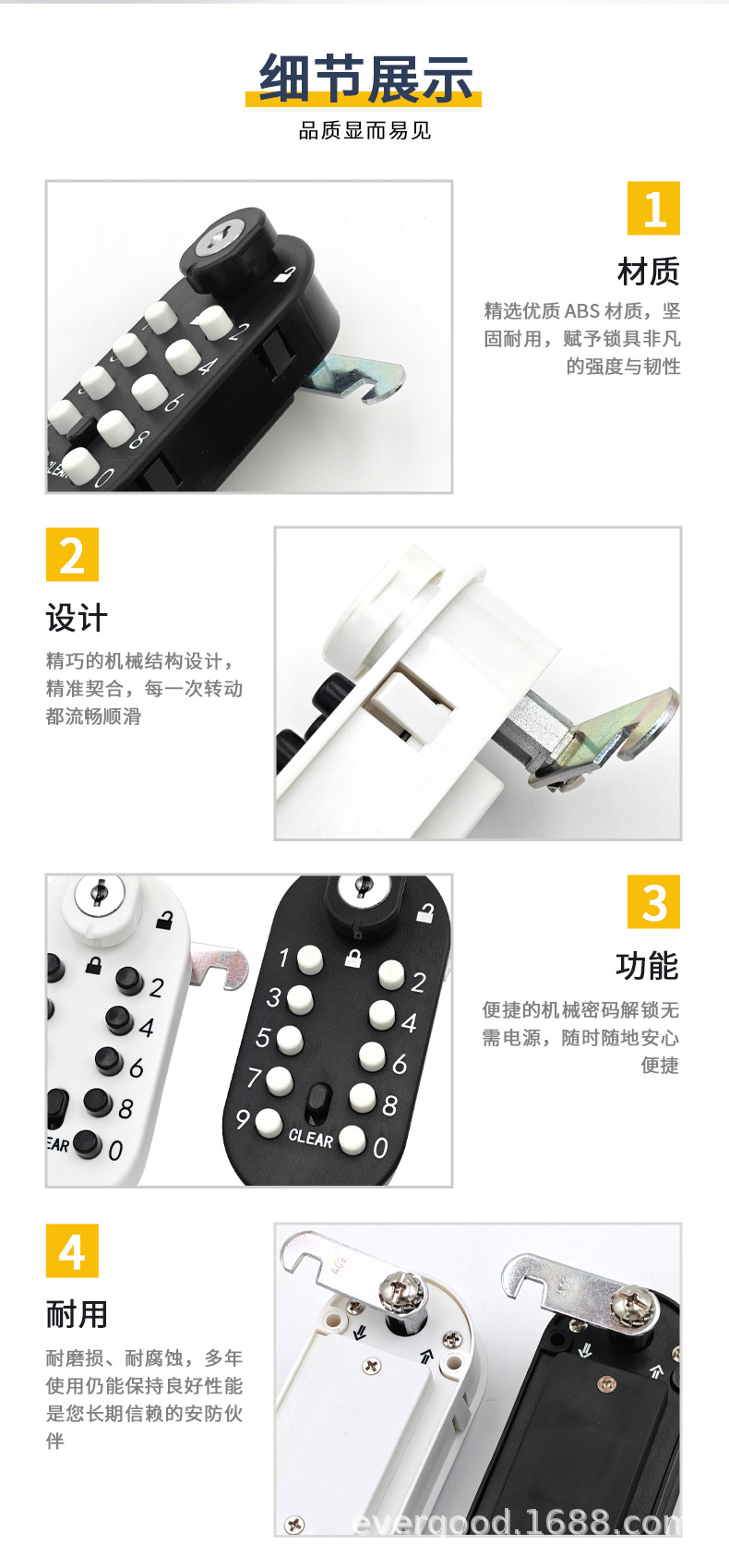Evergood金固牌四桁機械暗号ロックロッカーロック回転舌ロック専門ロック輸出ソース