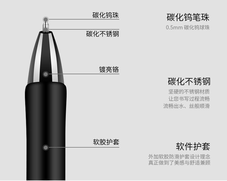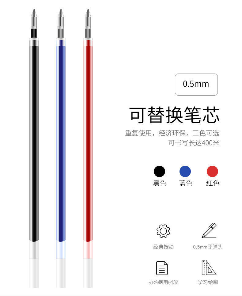 プレスゲルペン 0.5 ミリメートル学生リフィルボールペン会議ペン黒赤青学習事務用品署名ペン