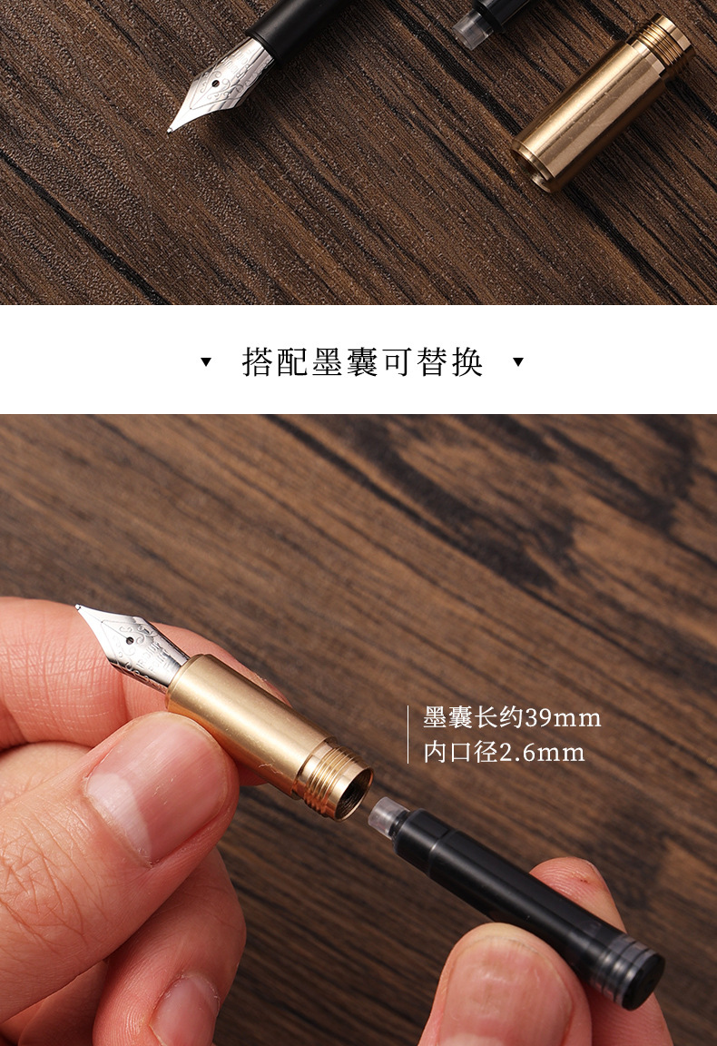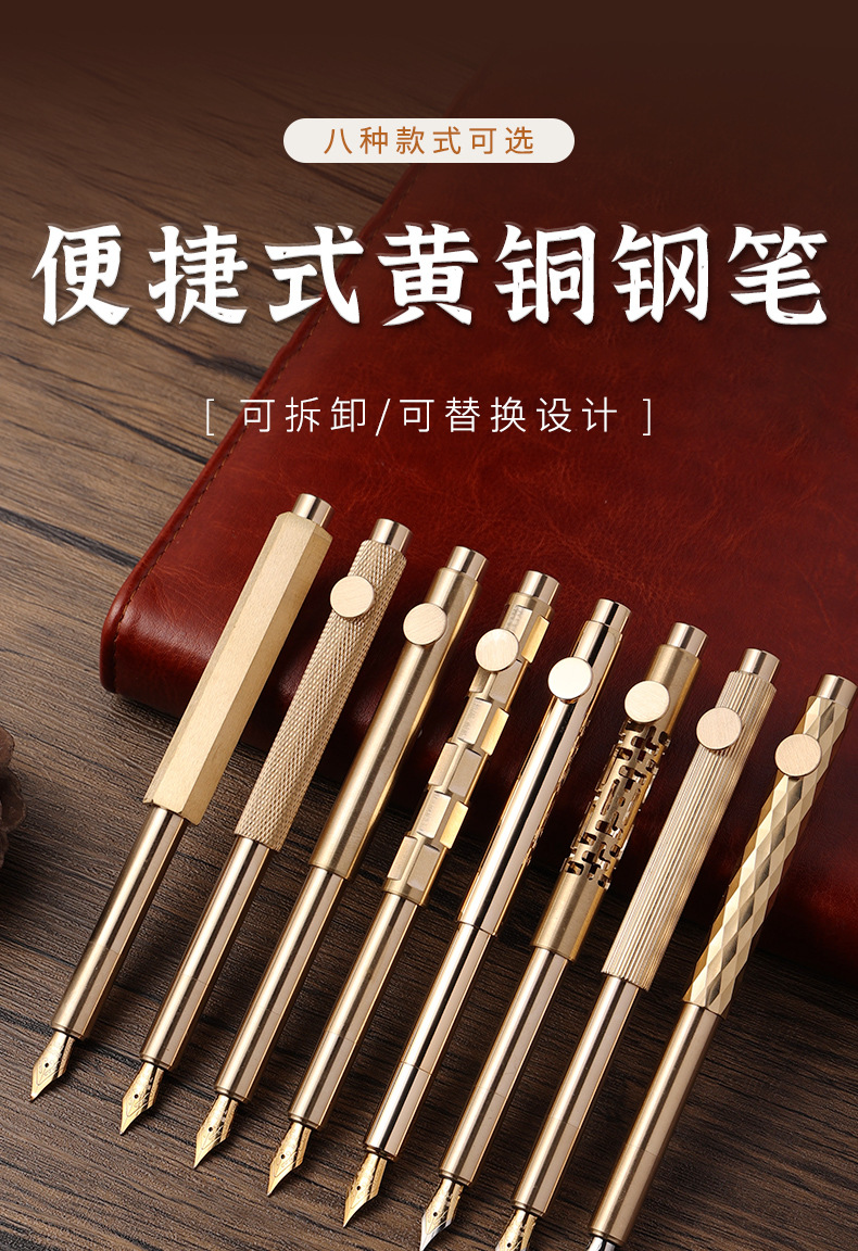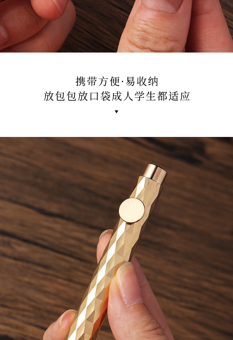 クロスボーダーレトロクリエイティブパーソナライズされたポケットペンミニ真鍮ポータブルショートビジネストラベルペン学生練習書道