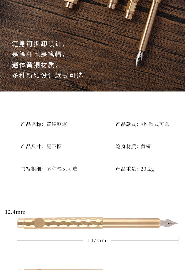 卸売り新型レトロ黄銅筆職人心品質檀木筆全シリーズ木頭筆注文ロゴ代発