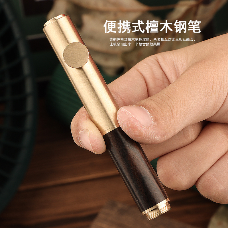 レトロ真鍮檀木携帯型ミニポケットペン学生書美工絵画練習字ビジネスプレゼント