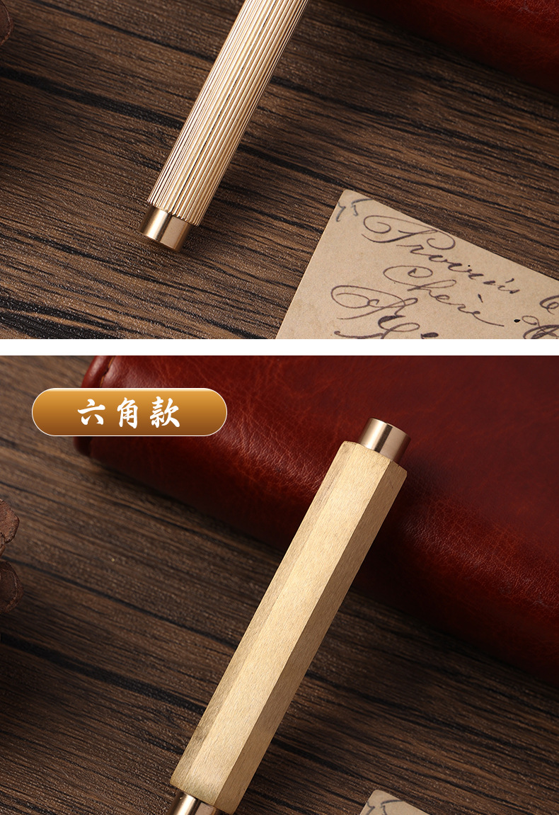 手作り六角形真鍮中性ペン六稜真鍮金属ビジネスサインペン事務学生銅尺ペン