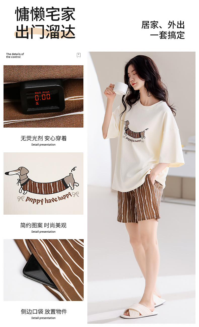 胸パッド付き女性用夏用純綿パジャマ半袖ショーツ2025新しいスタイルは屋外で着用可能かわいいホームウェアセット夏