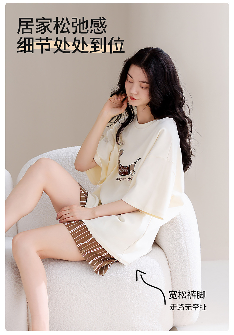 胸パッド付きパジャマ女性の夏の半袖クロップドパンツセット 2025 新しいラウンドネック漫画は家の服の外で着用できます