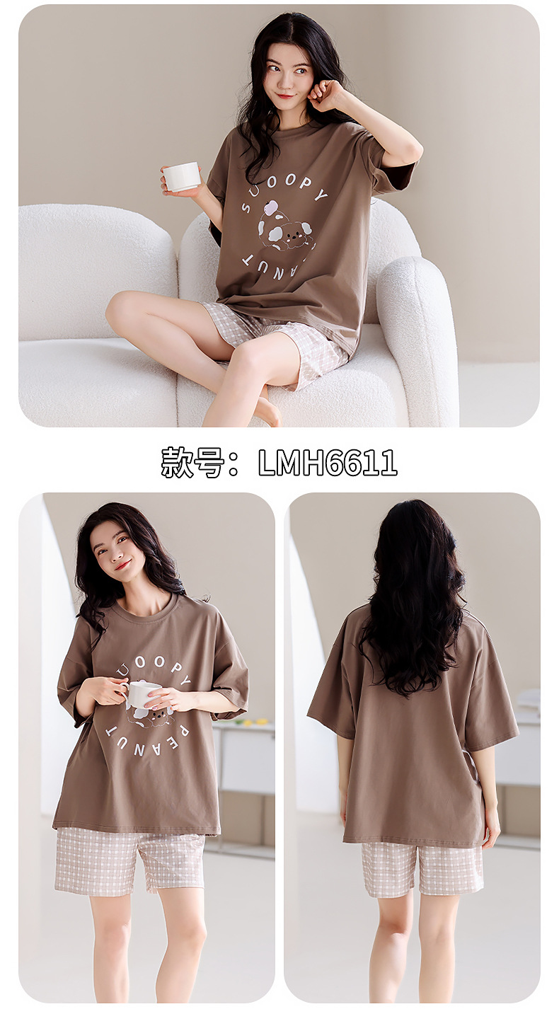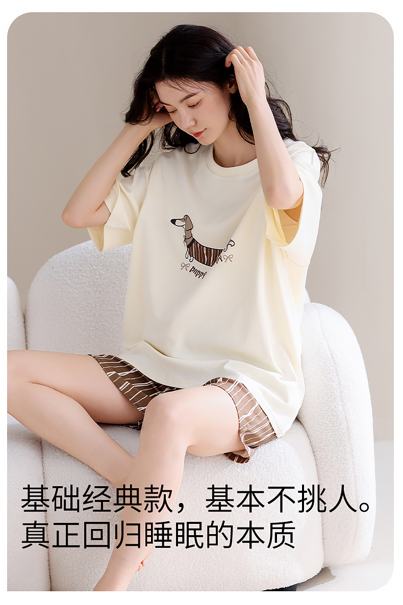 パジャマ女性の夏の純粋な綿の胸パッド半袖ショーツ 2025 新しいかわいい漫画は家の服のスーツの外で着用できます