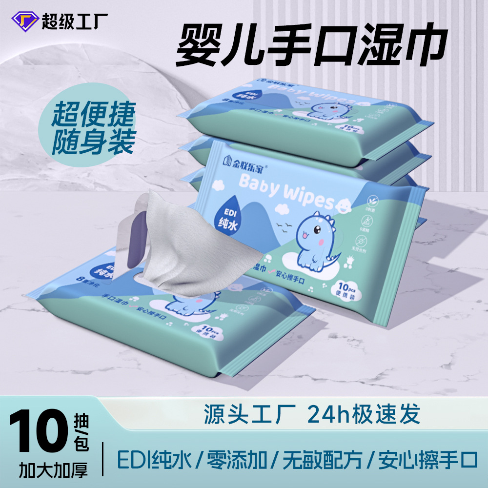 10枚入りベビーワイプス小パック、ミニ専用手・口拭き子供用ウェットティッシュ、幼児用純水ウェットティッシュ卸売