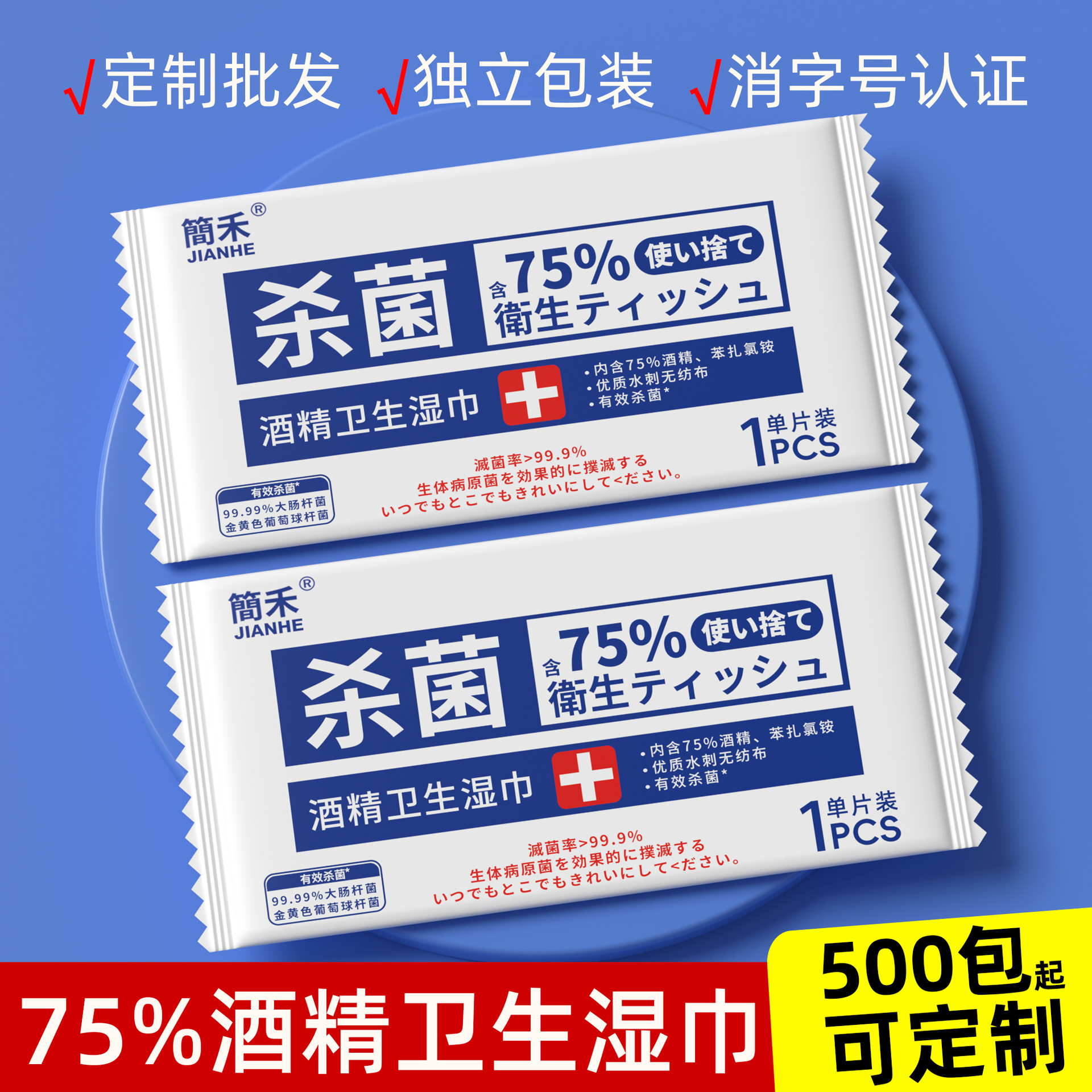 単品包装の英日75度アルコールウェットティッシュ卸売、個別包装の清潔・除菌使い捨てウェットティッシュ工場