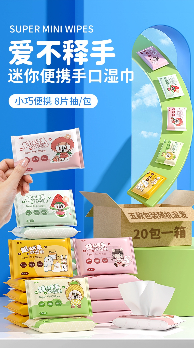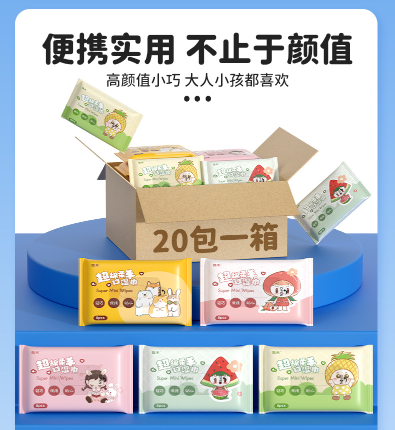 ミニウェットワイプ小さなパッケージベビーウェットワイプ子供の手と口のクリーニング増粘ミニ学生ウェットワイプポータブル小さなパッケージ