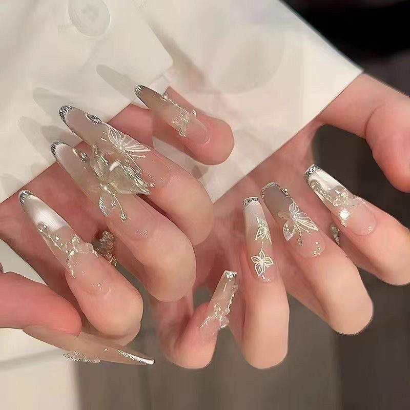 鎏金蝴蝶梦蝶纯手工穿戴甲轻奢镜面美甲绝美名媛富贵猫眼粉色裸色