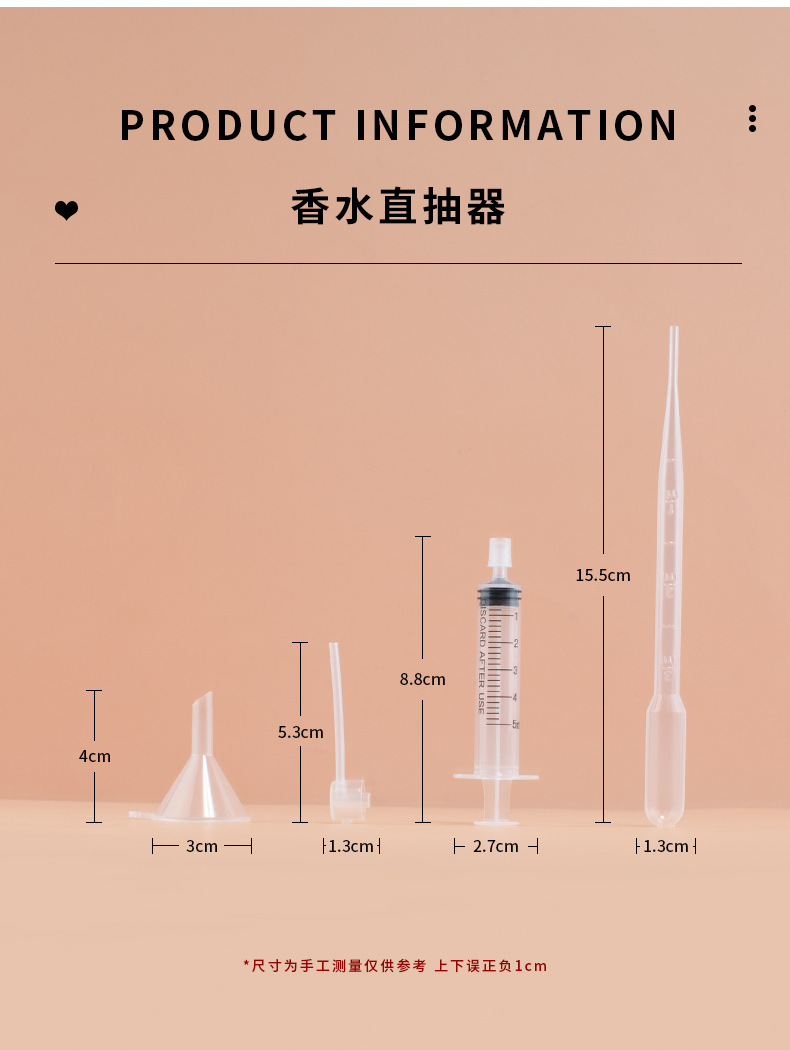 香水直抽出器、分注アーティファクト、分注ボトル抽出器、サンプルツール、漏斗、ストロー、注射器プレス