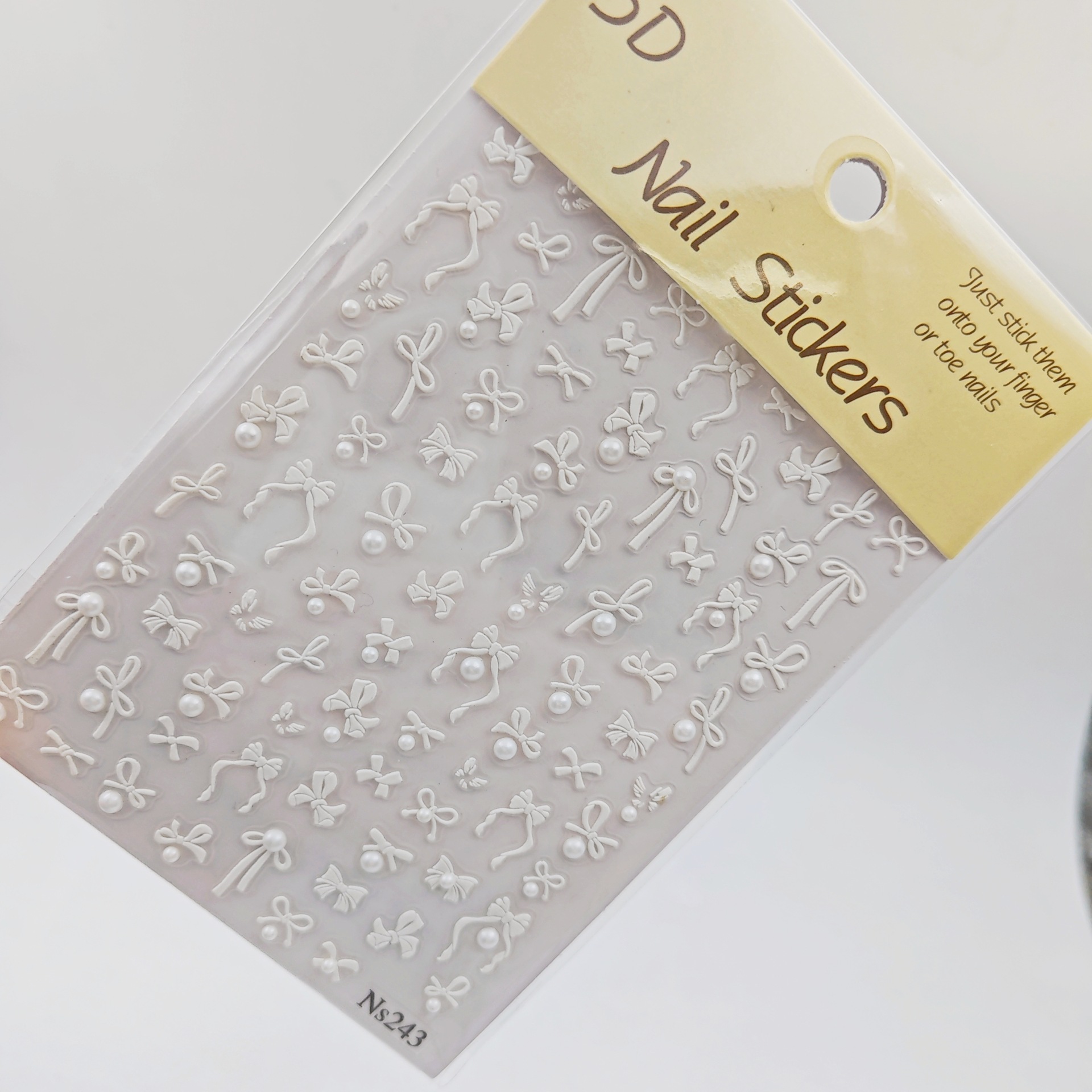新しい純白パールピンクリボンネイルアート 5D 立体レリーフクリスタルダイヤモンドネイルデカールネイルアート装飾アクセサリー