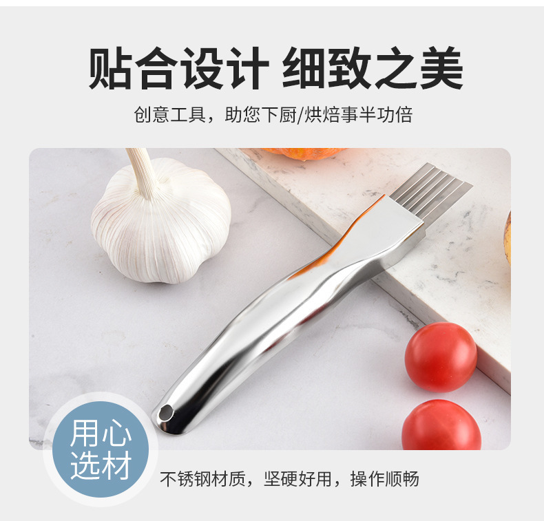 メーカーはステンレス製の玉ねぎカッター、キッチン用品、玉ねぎカッター、鋭利な刃を持つクリエイティブなシュレッダーを供給しています。