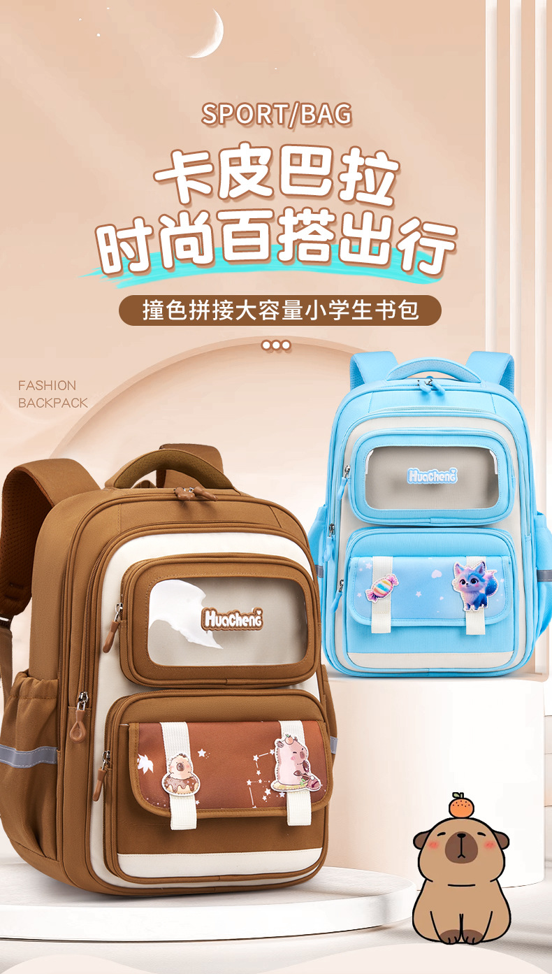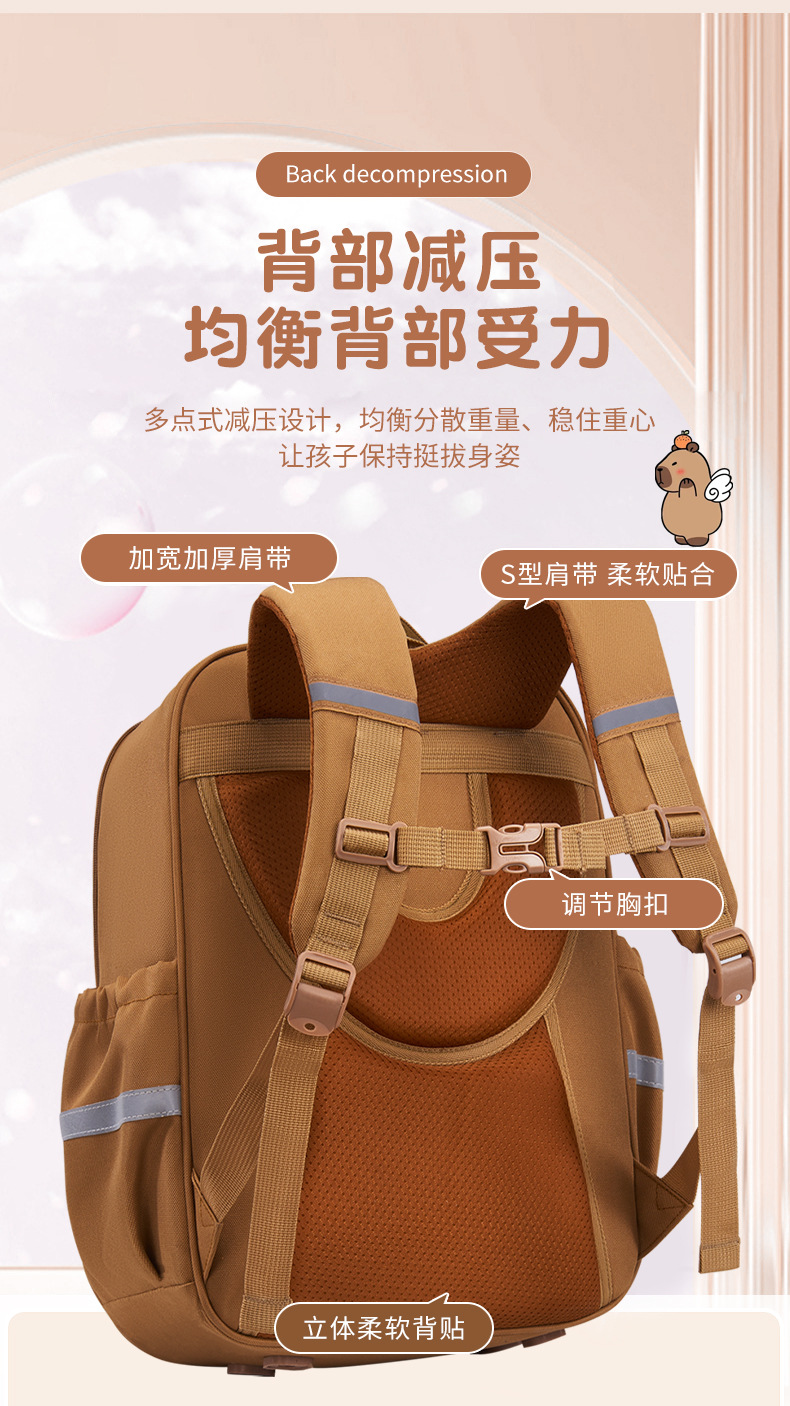 クロスボーダーカピバラ子供のかわいいスクールバッグ通気性バックパック多層大容量耐傷性と耐摩耗性メーカー卸売