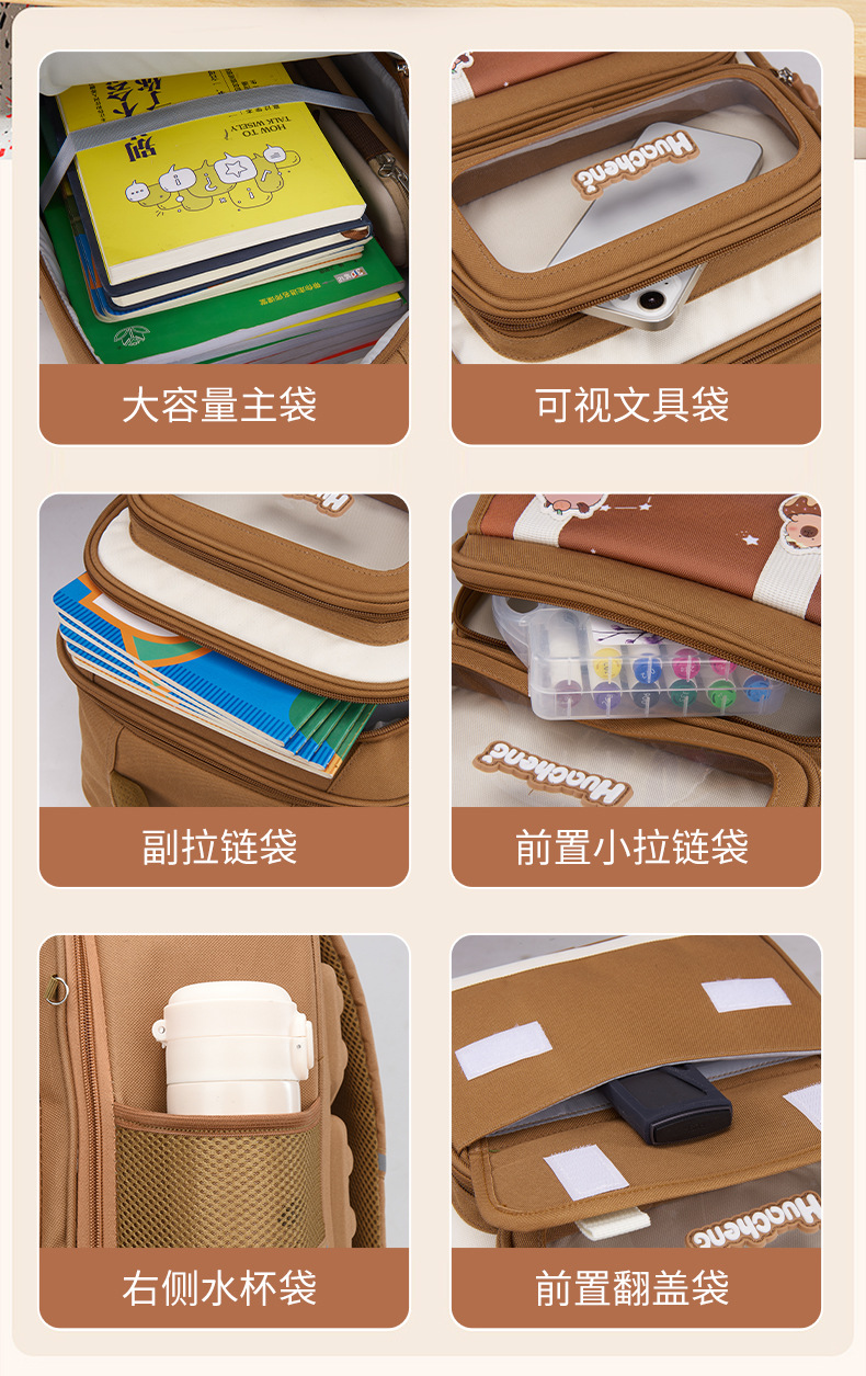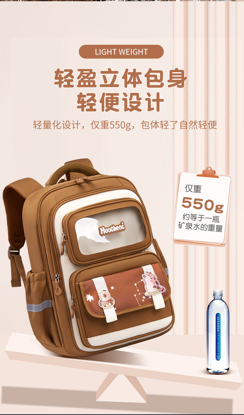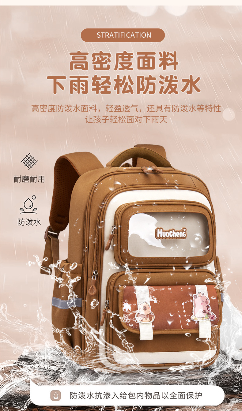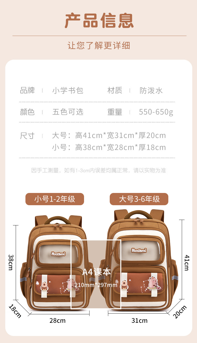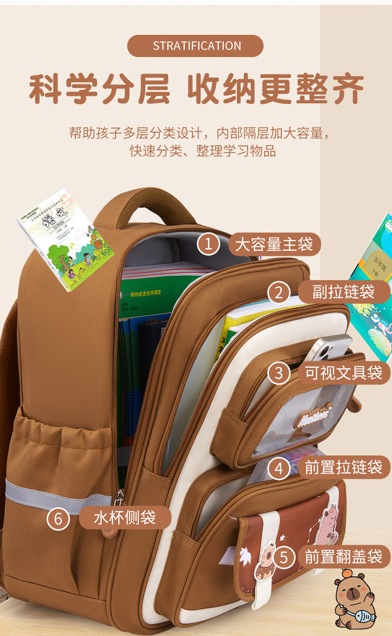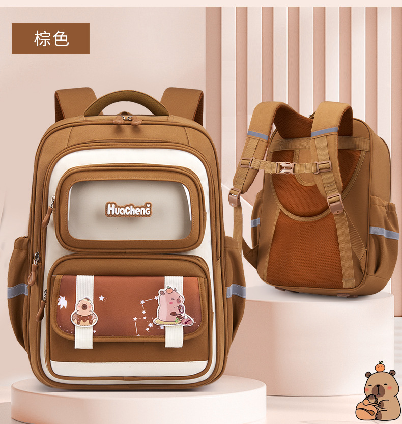 新しいブラウンカピバラ漫画子供のバックパック小学校バッグ 1-3-6 グレード大容量スクールバッグ