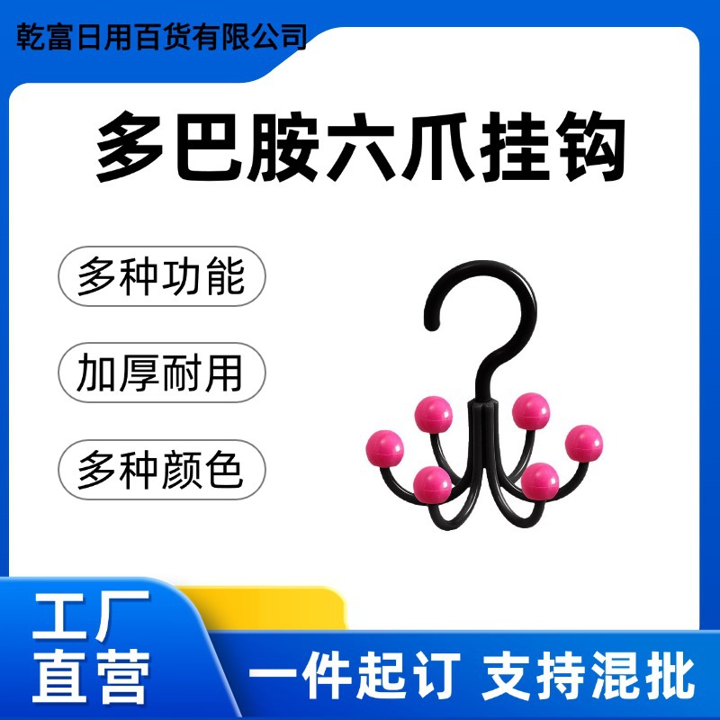 新款多巴胺旋转六爪挂钩 家用内衣衣帽挂钩 多功能免打孔收纳挂架
