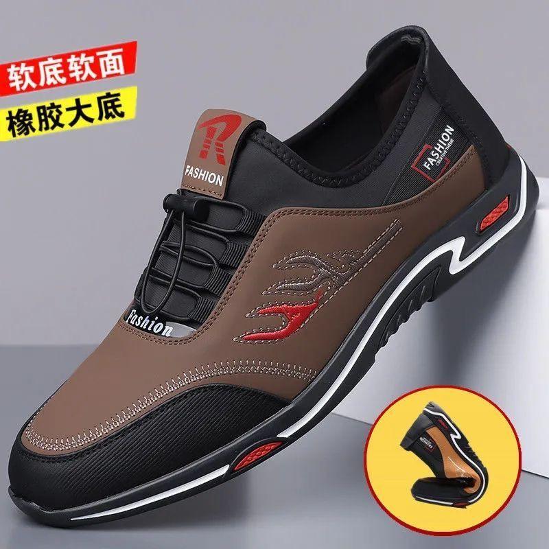 2025 春の新作メンズシューズソフトソール滑り止めカジュアルレザーシューズファッショナブルで多用途のスリッポンレザードライビングシューズお父さん用