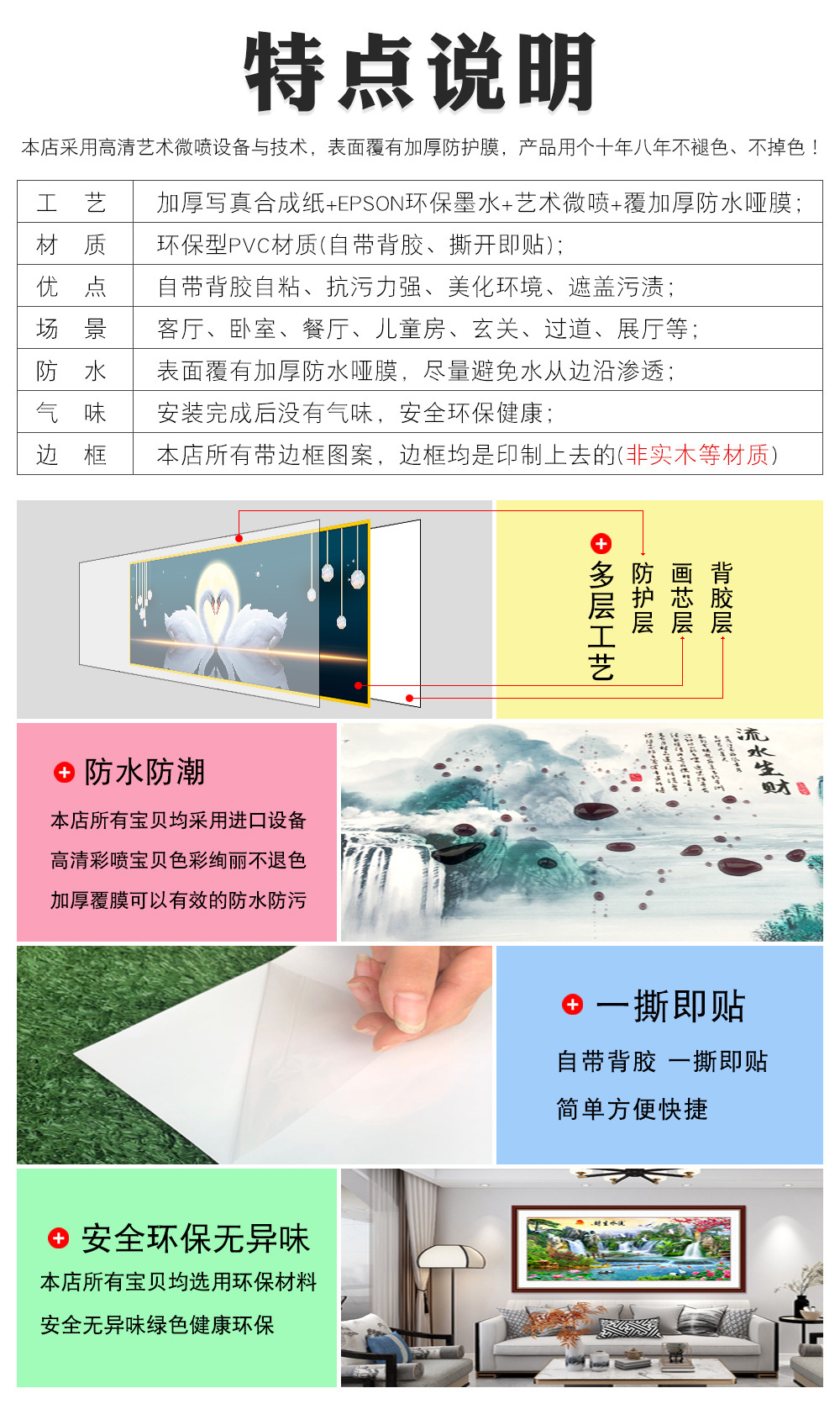 寝室のベッドサイド装飾画自己粘着壁ステッカー絵画ホテルリビングルームソファ背景壁壁紙ステッカー