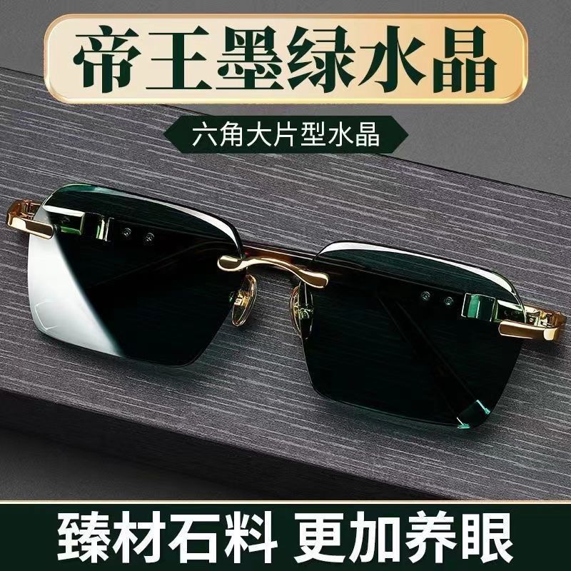 2025年新型クリスタルストーンカットエッジフレームレスサングラスメンズドライバー運転釣り専用サングラス紫外線防止