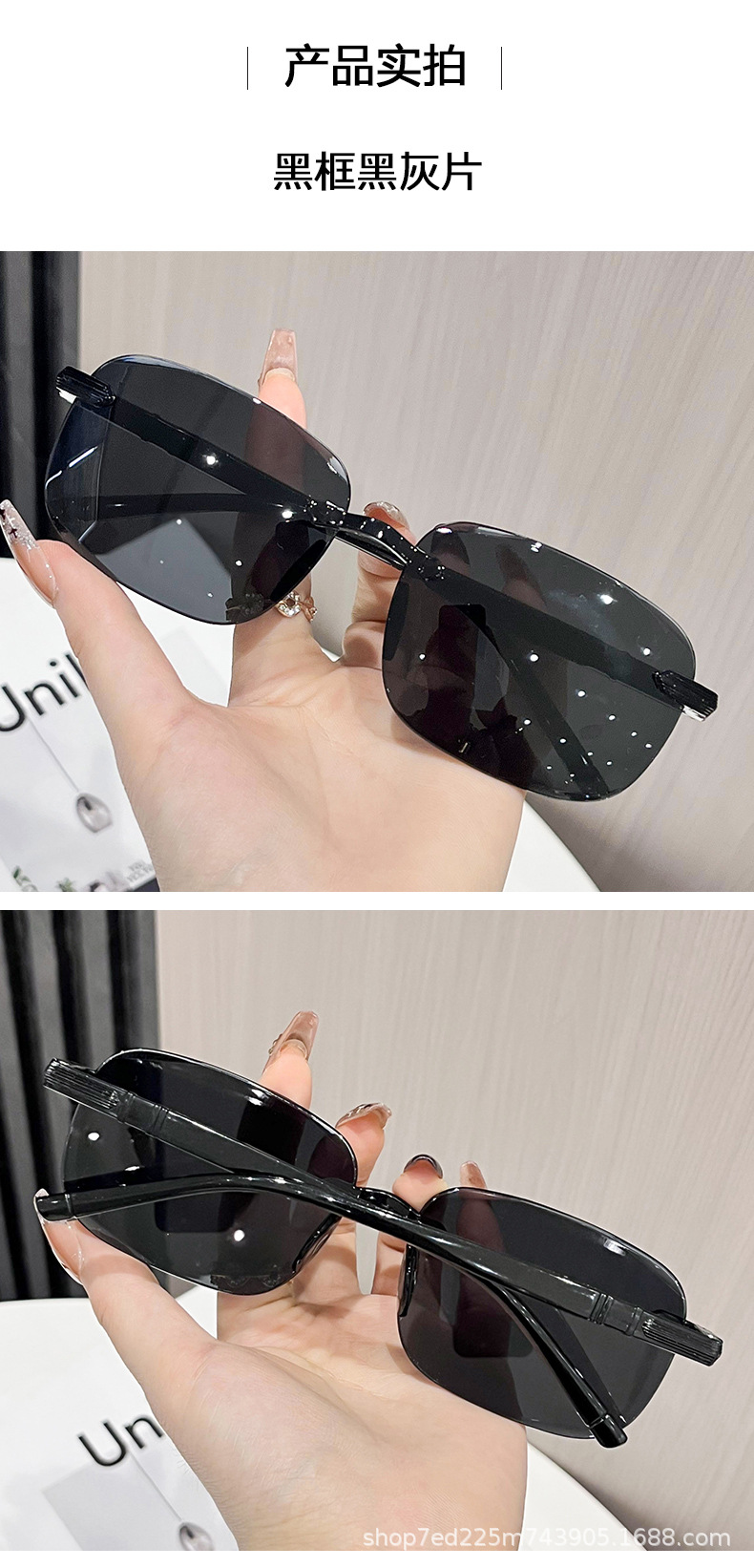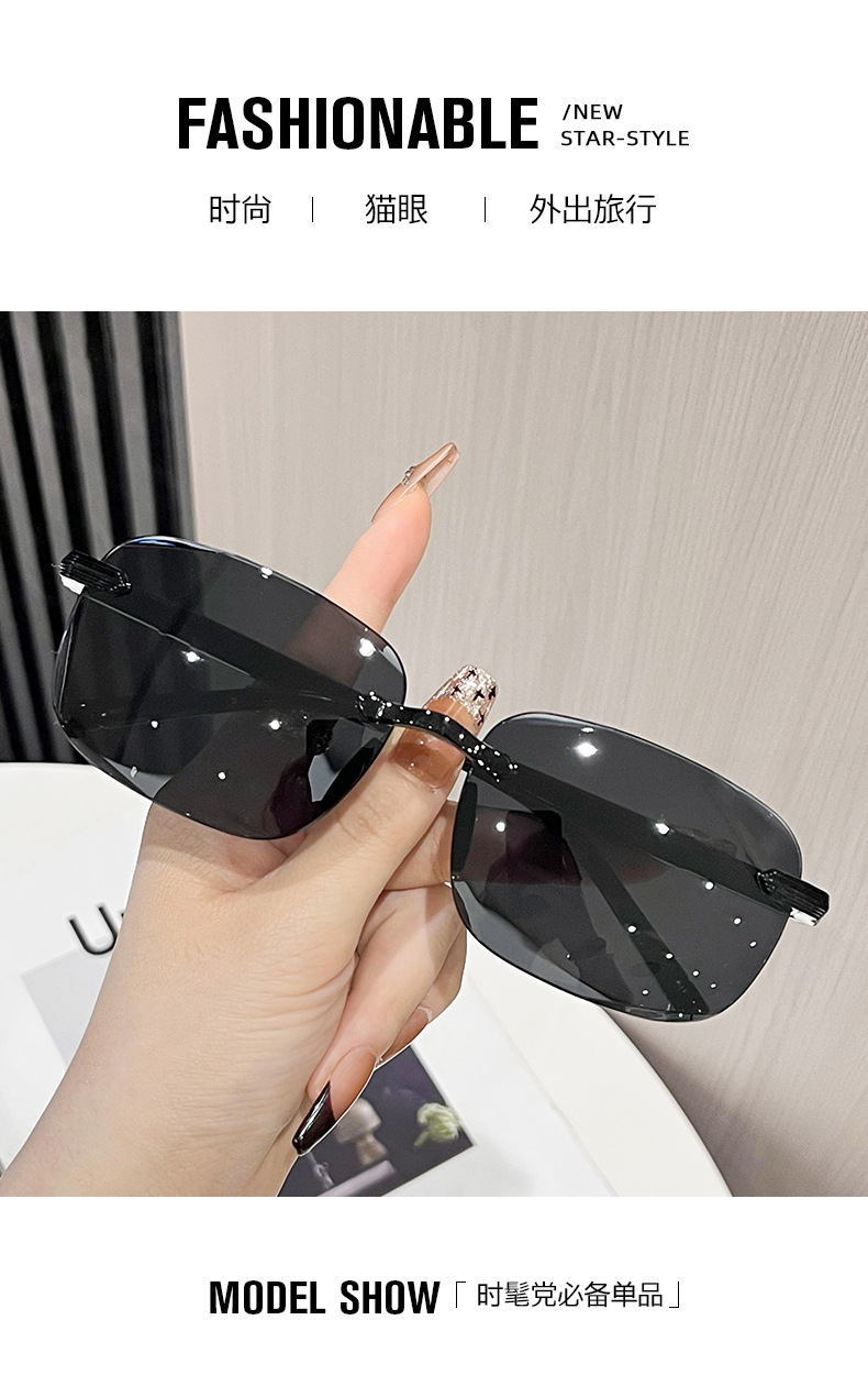 2025年新作サングラス Douyin 人気の抗UVサングラス トレンディなフレームレスエッジカットファッションサンシェードサングラス