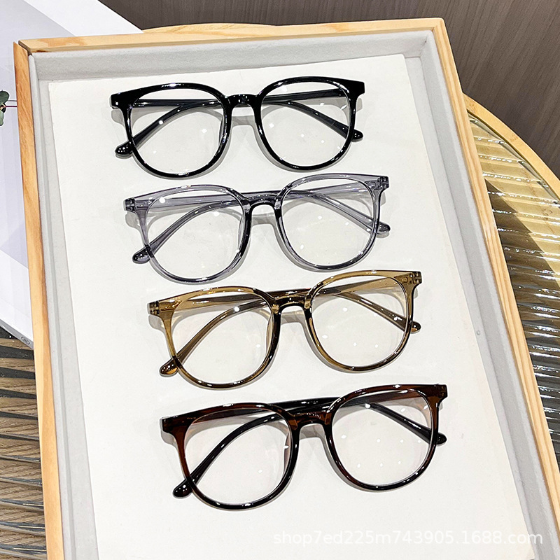 韓国超軽量プレーンブルーライトカットメガネフレーム女性用ラージフレームメンズインターネットセレブ装飾メガネラウンド大きな顔痩身