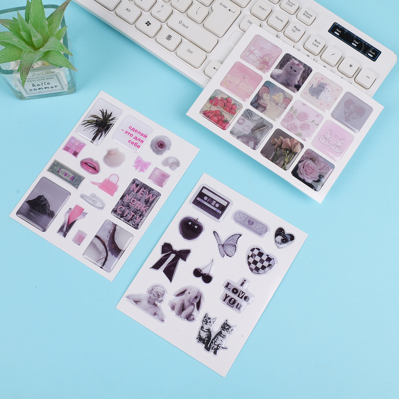 PVC クリスタルドリッププラスチック楽しいクリエイティブ漫画三次元ラベル漫画イン自己粘着ラベル防水特殊形状接着剤