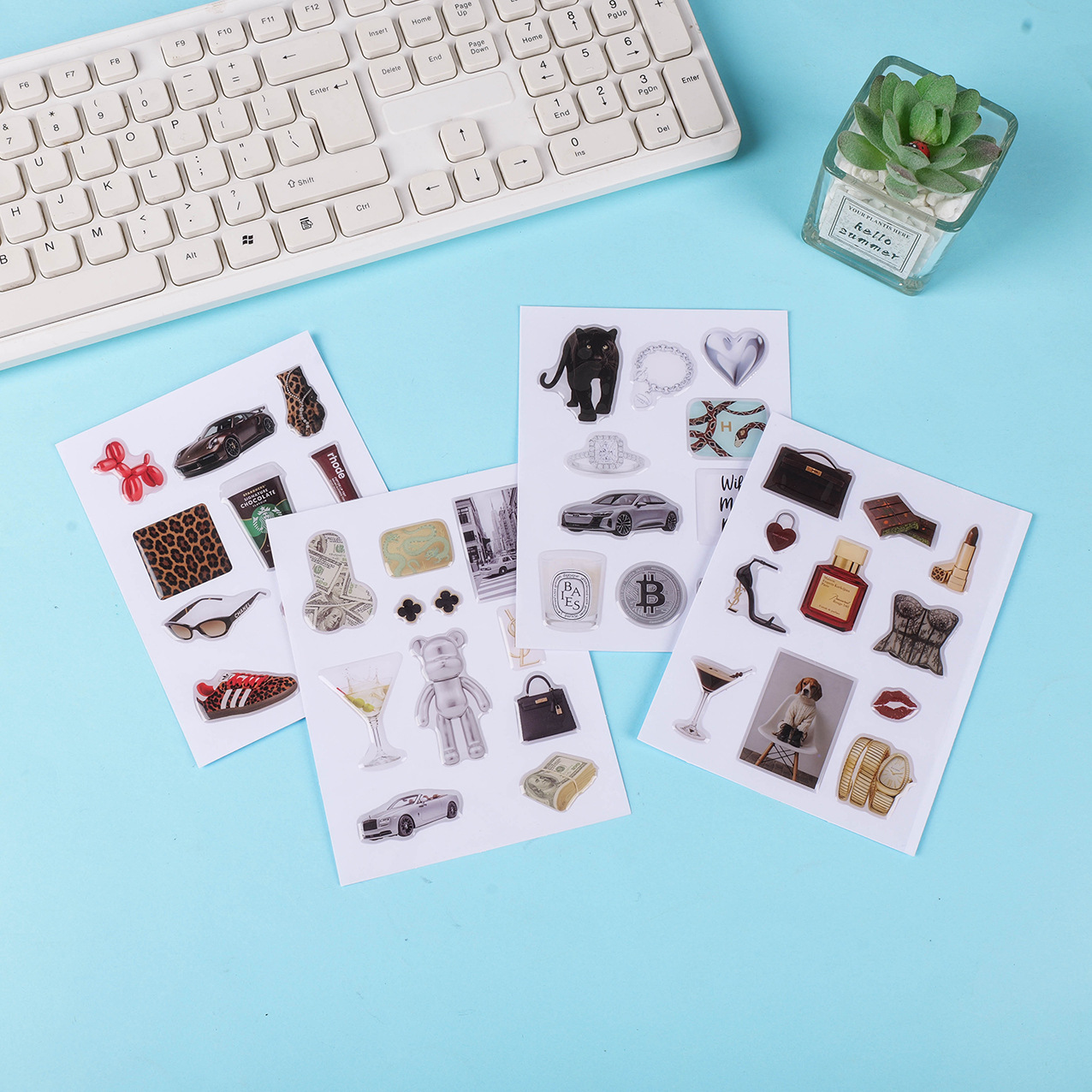 滴胶贴纸高颜值插画ins风立体3D车标logo贴纸diy手机壳装饰标签