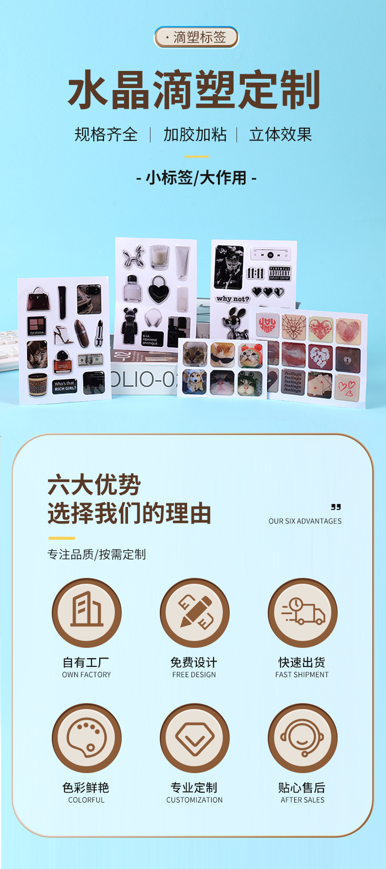立体滴塑贴纸定制防水DIY水晶滴胶卡通软胶商标标签装饰贴纸定做