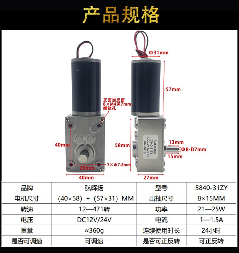 クロスボーダー専用5840-31zy dcモーターモーター12v24Vターボウォーム小型セルフロック减速モーター