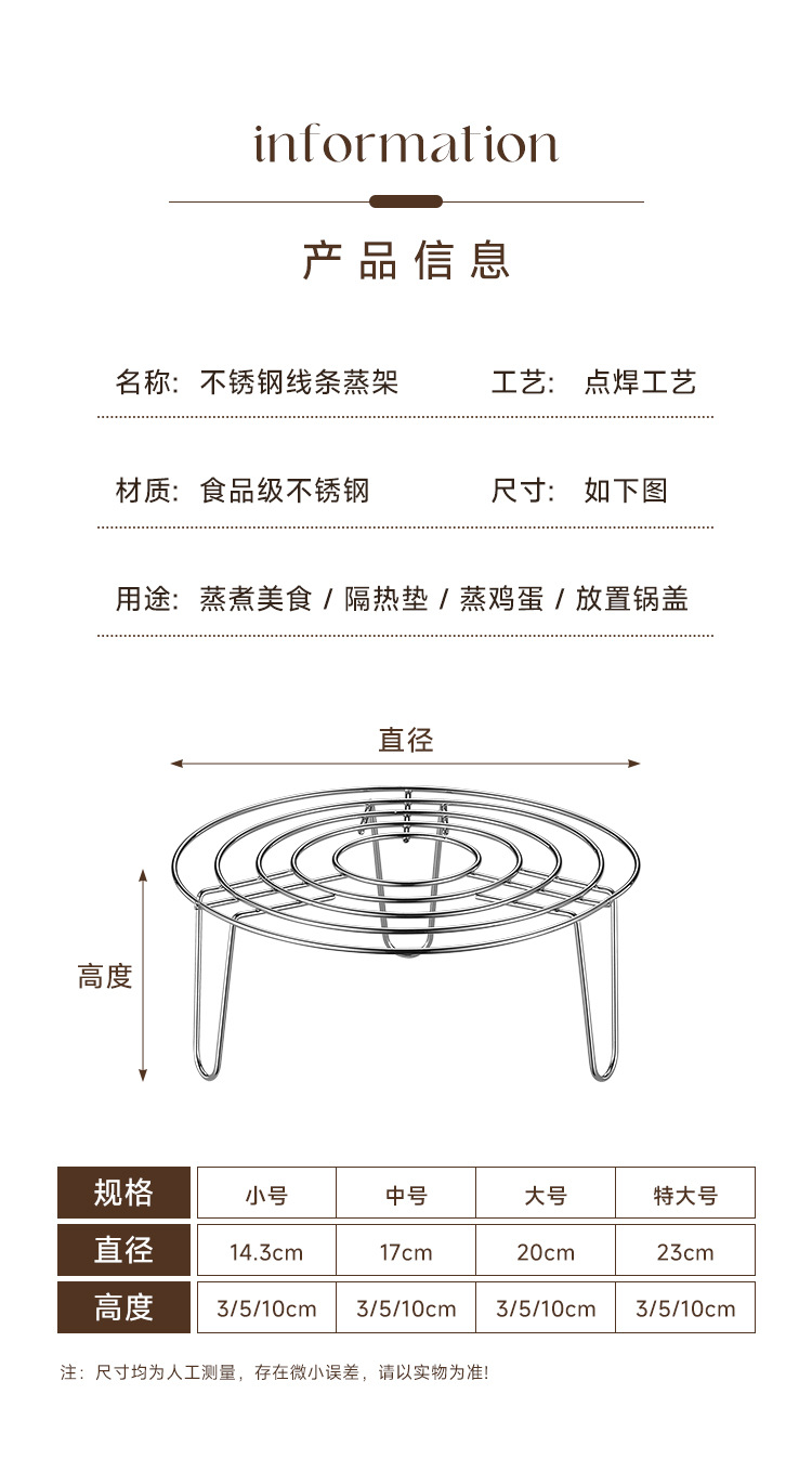 不锈钢蒸蛋架蒸架加厚蒸笼架蒸包子饭菜蒸架蒸屉加厚蒸笼架隔热架
