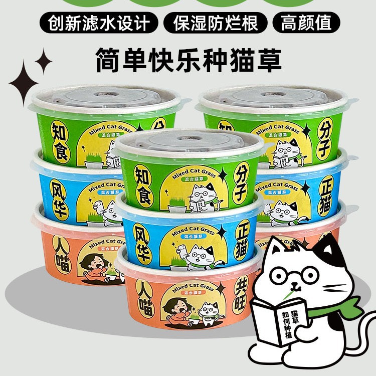 怠惰なインスタントラーメン猫草鉢植え水耕栽培猫草カップ猫の毛を除去し消化を促進するスナック猫草の種子卸売