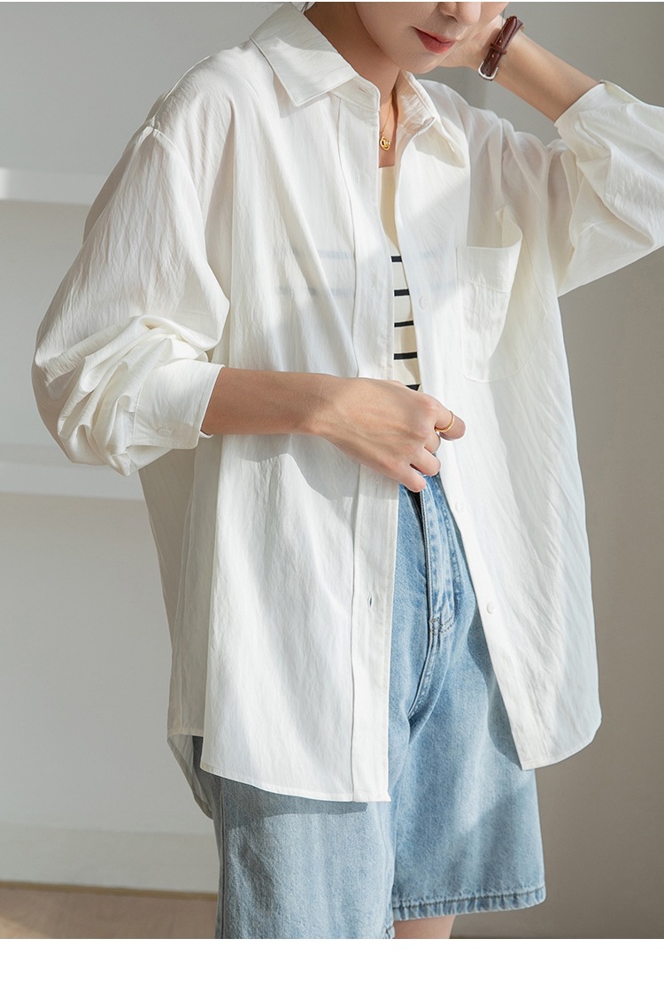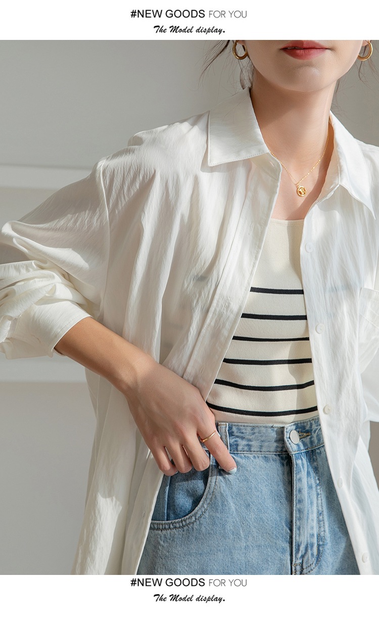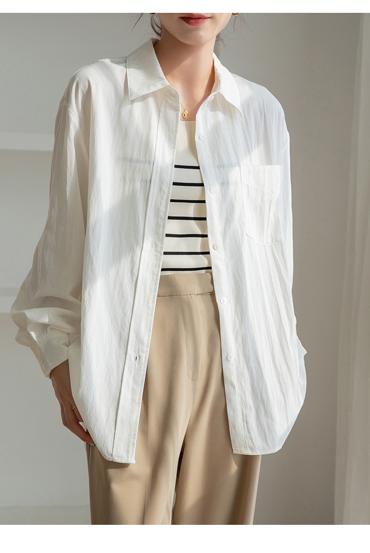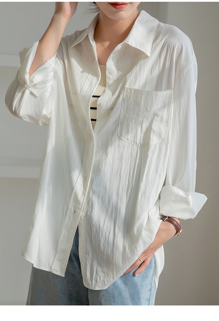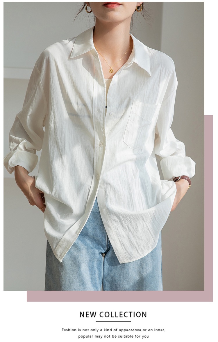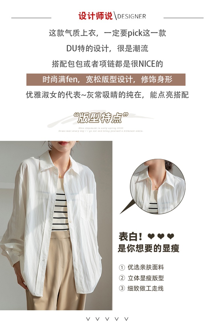 女性用長袖シャツトップス、ニッチなデザイン、2025春夏新作ルーズラペルカジュアル日焼け止めシャツ