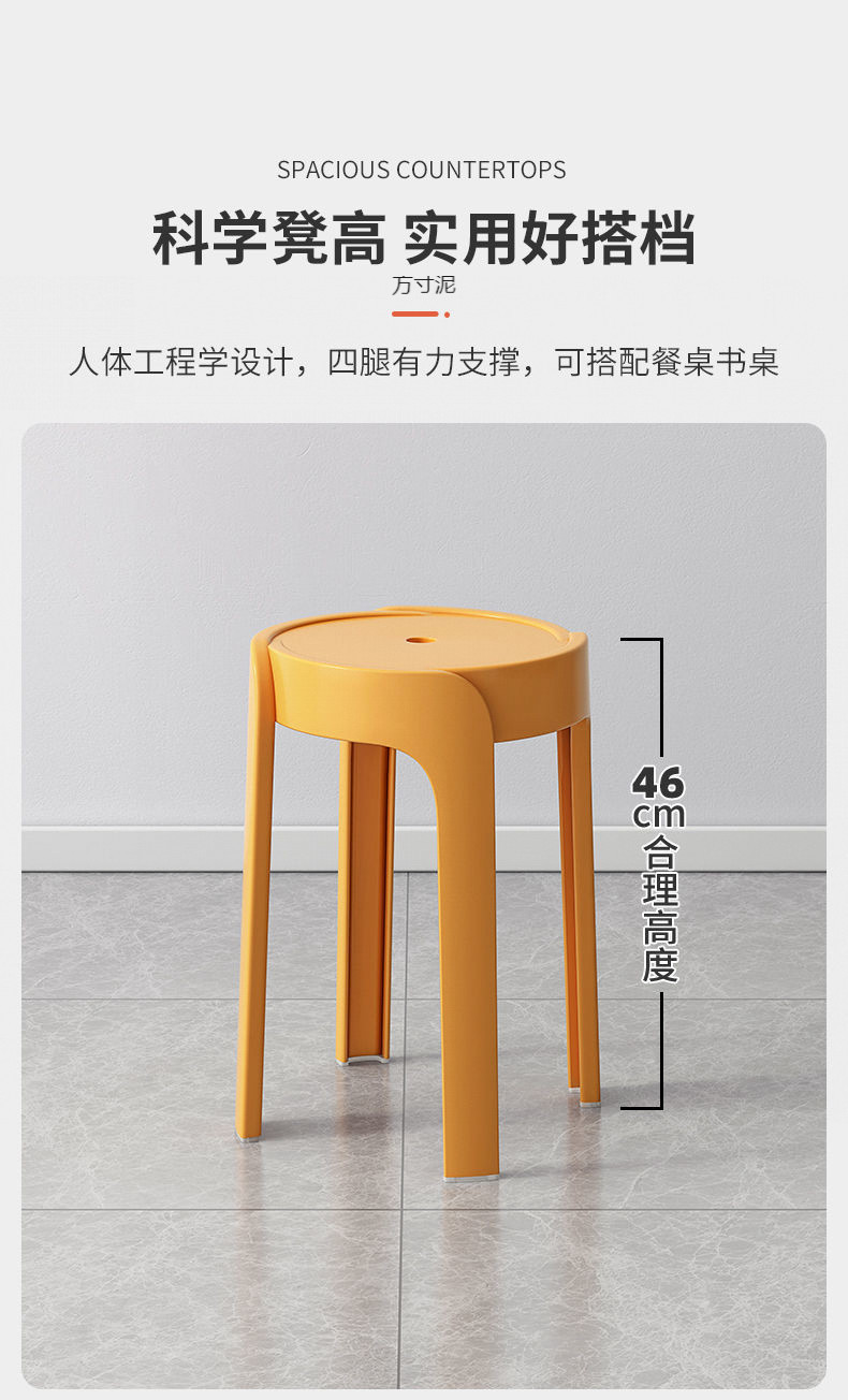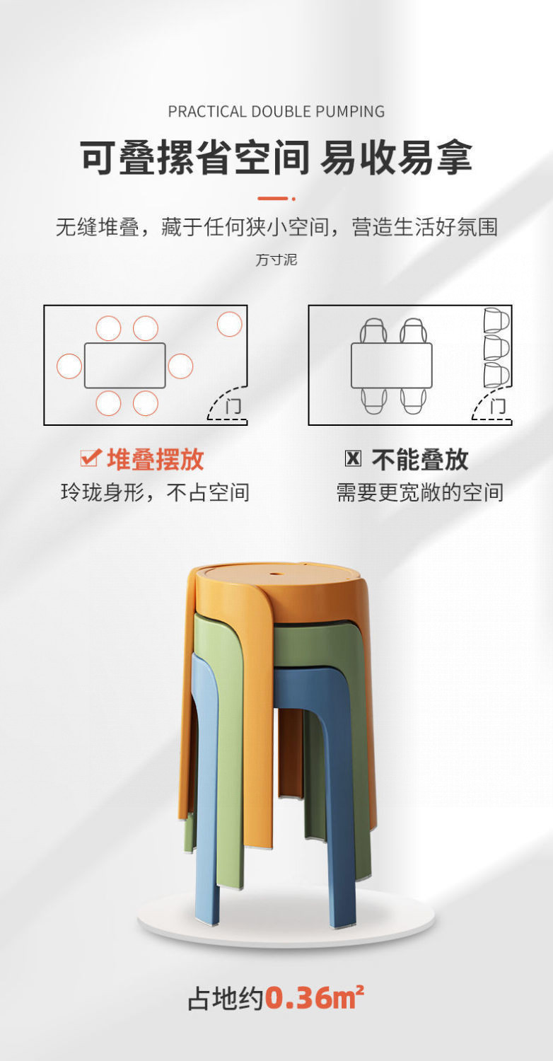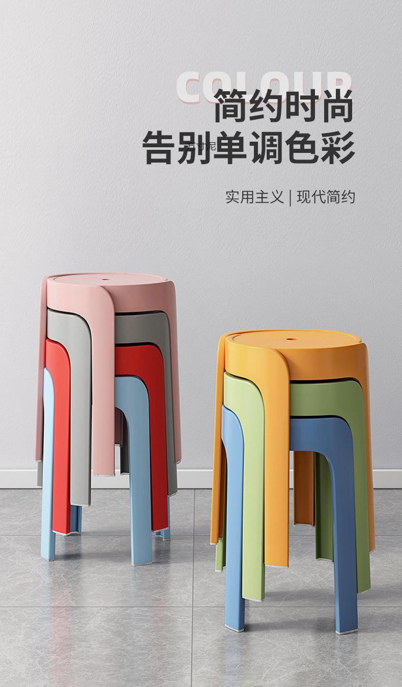 凳子家用加厚圆凳现代简约创意客厅可叠放摞叠餐桌塑胶高椅子轻邦
