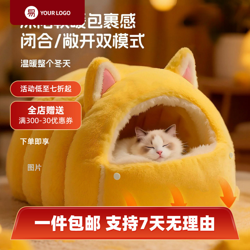 猫窝冬日加厚封闭式感猫咪睡窝猫床冬天冬季保暖新型猫屋宠物