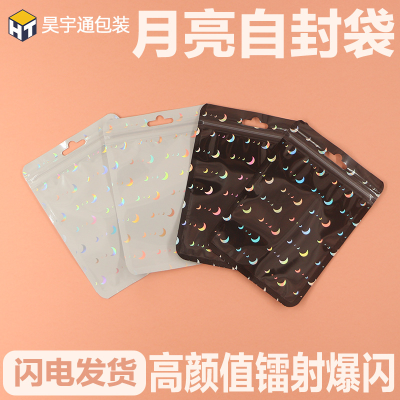 レーザーフラッシュ月陰陽自封袋ペンダントアクセサリー収納シール骨袋デジタル小物包装袋