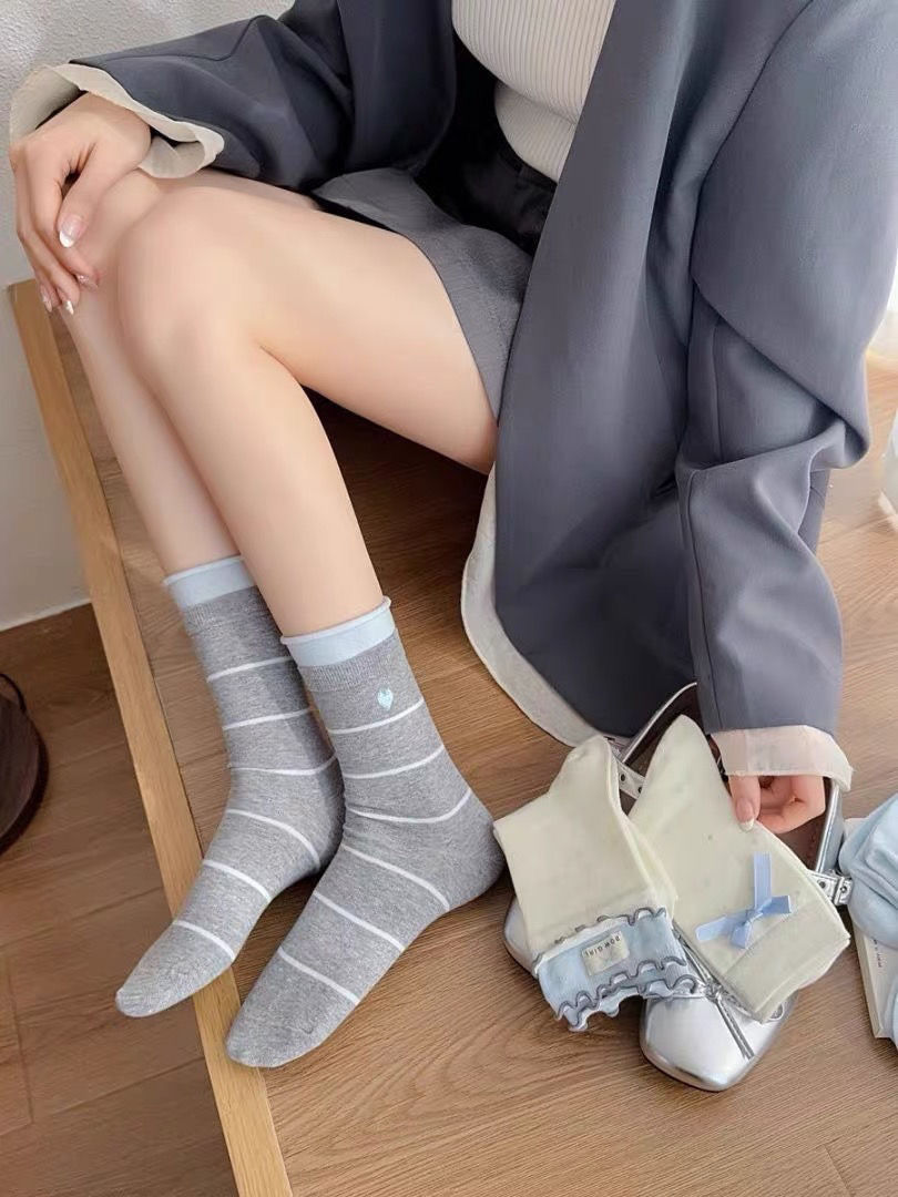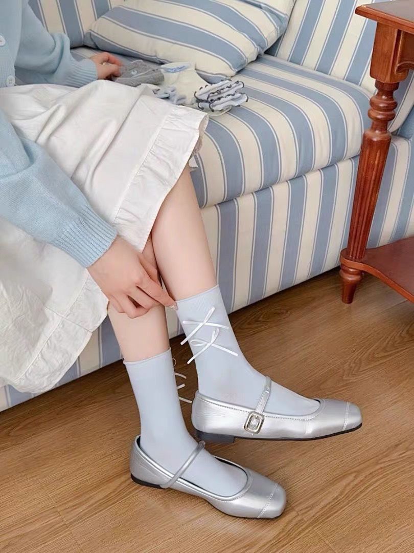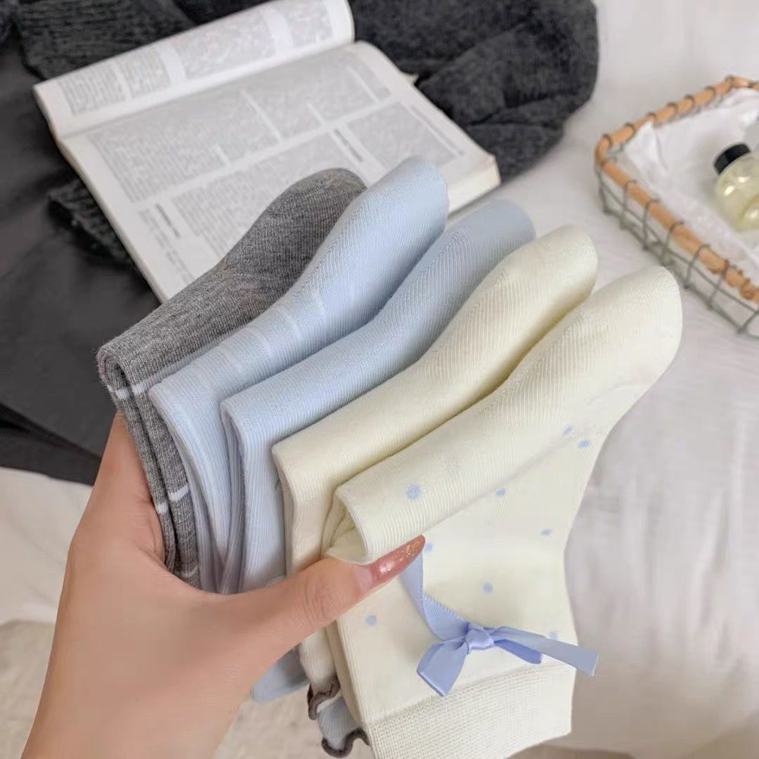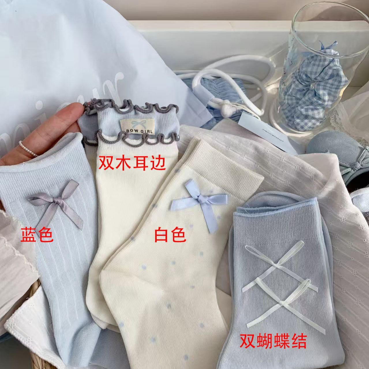 蝶ネクタイソックスレディースミッドカーフソックス綿夏薄いレースかわいい日本の女の子耳パイルロングソックス