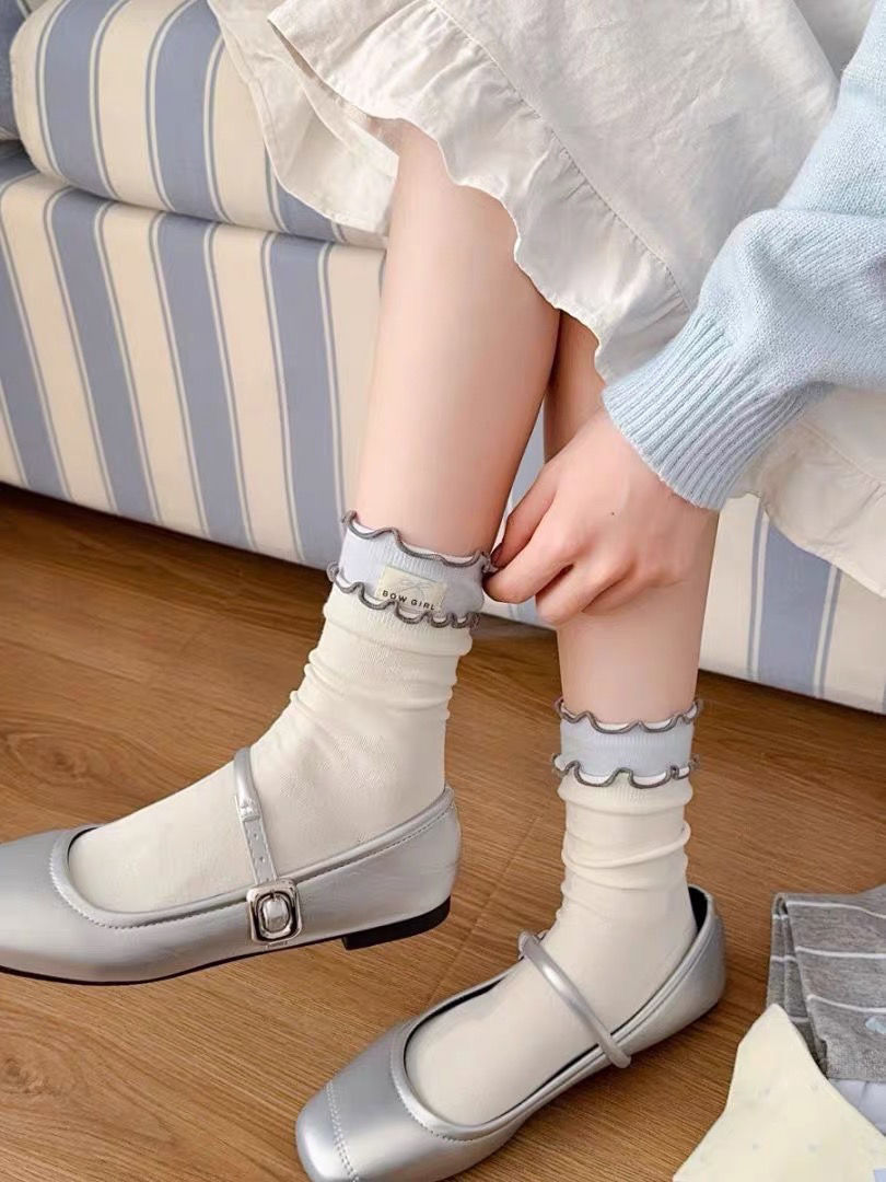 夏用女性用白ソックス、ミッドカーフ、耳付きソックス、トレンドの日本製パイルソックス、カールソックス、レースソックス